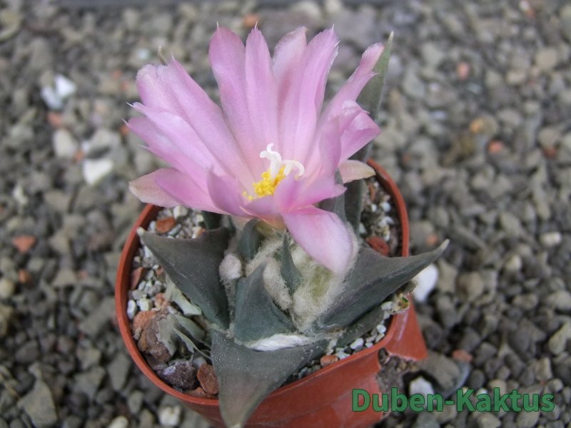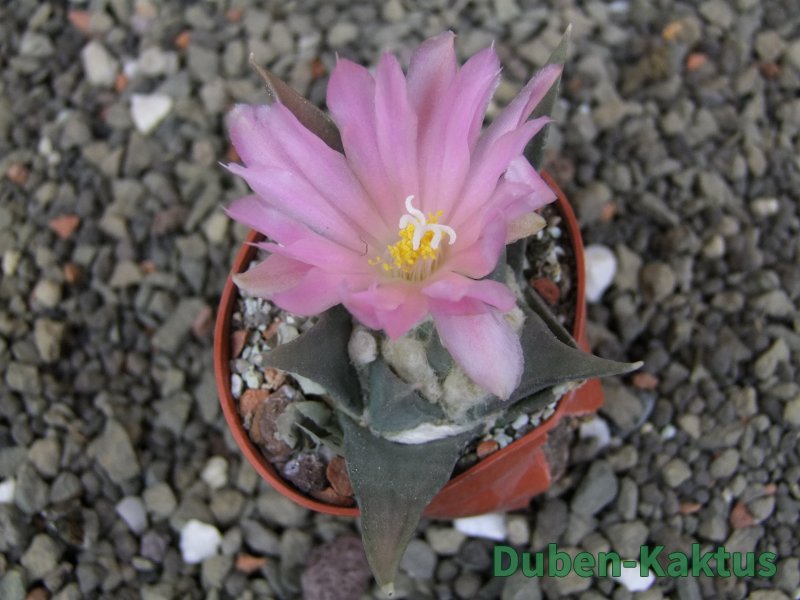 Výběrová rostlina. Na posledních fotografiích je porovnání s kaktusem v květináči 5,5 cm. Ariocarpus confusus La escondida. Poblíž La Escondida se nachází přechod k trigonusům s barvou květu od krémové po světle fialovou. Další Ariocarpusy můžete objednat v kategorii Kaktusy standard a podkategorii Ariocarpus od 70 Kč.