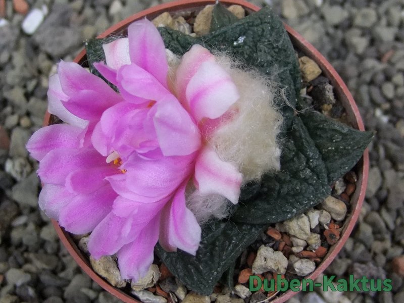 Ariocarpus fissuratus, mnohaletá květuschopná rostlina. Výběrová kategorie Ariocarpusů. Kaktusy jsou zde foceny, evidovány a prodávány individuálně. Na posledních fotografiích je porovnání s kaktusem v květináči 5,5 cm.