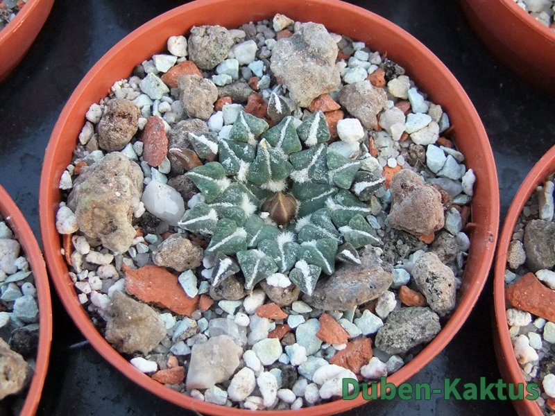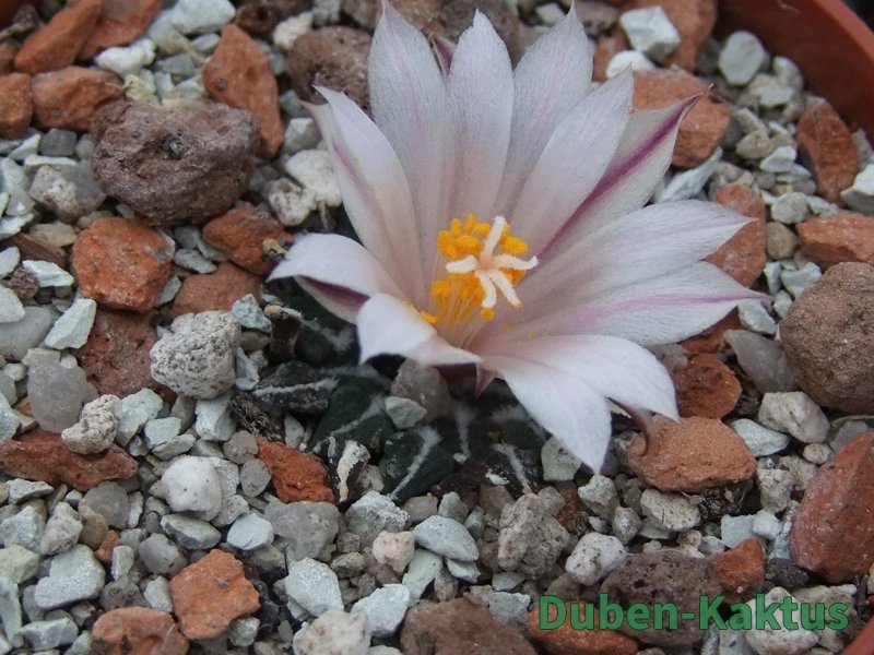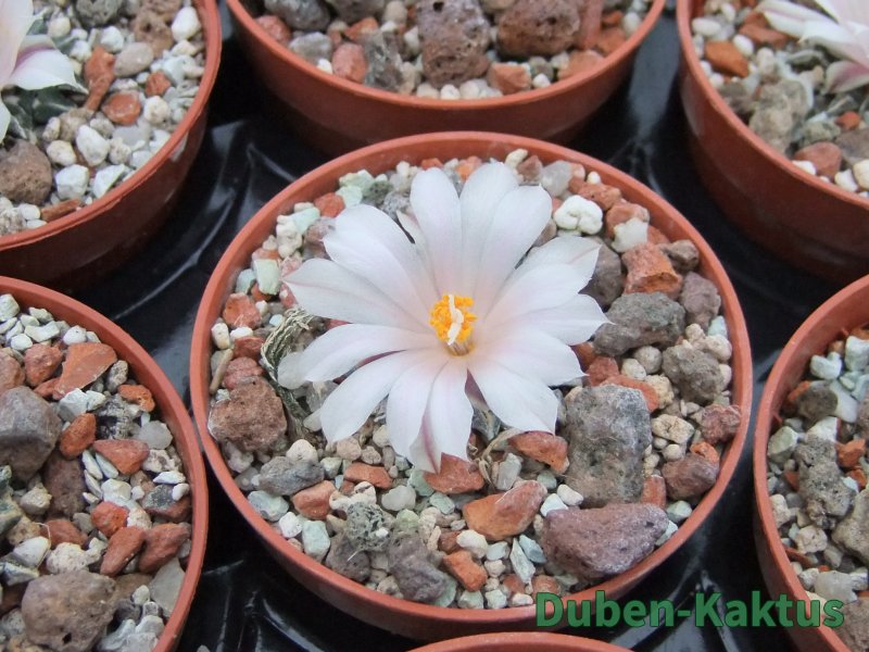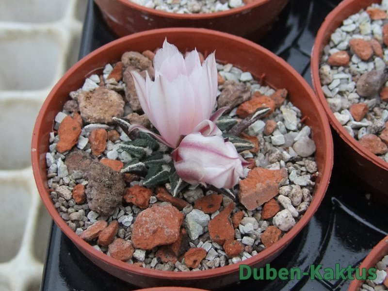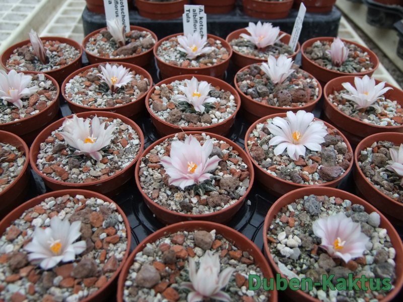 Kaktus Ariocarpus kotschoubeyanus albiflorus Tula, Tam. patří mezi mexické miniatury. Kaktusy po 20 letech pěstujeme v květináči 6 cm. Již čtyřleté semenáče vytvářejí výrazný řepovitý kořen.