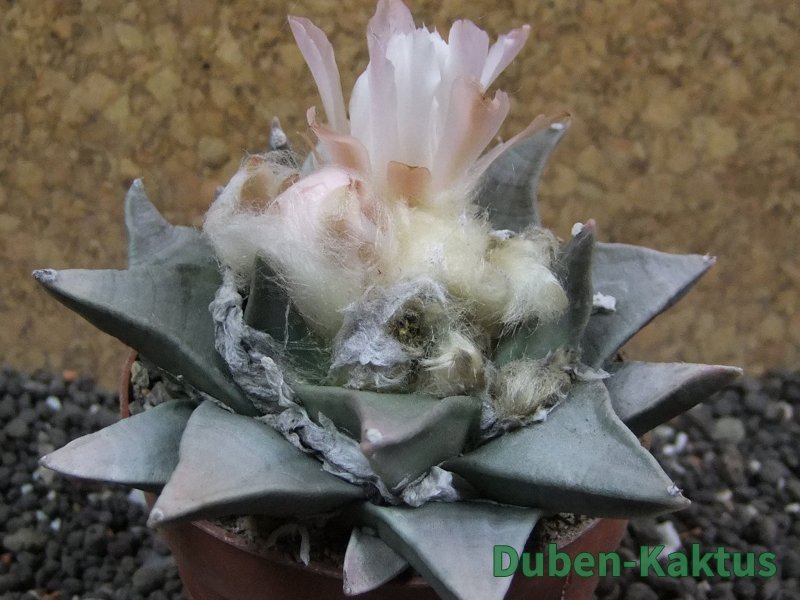 Minimálně 15 let stará sbírková rostlina. Na poslední fotografii porovnání s Ariocarpus fissuratus v květináči 5,5 cm. Výběrová kategorie Ariocarpusů. Kaktusy jsou zde foceny, evidovány a prodávány individuálně.