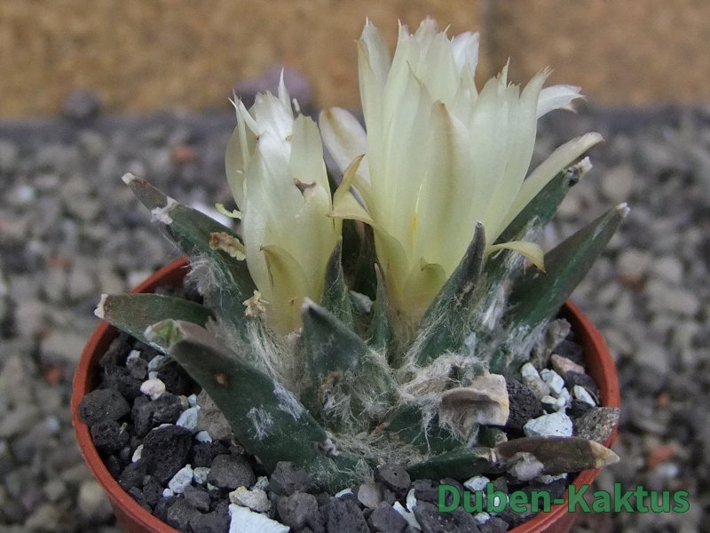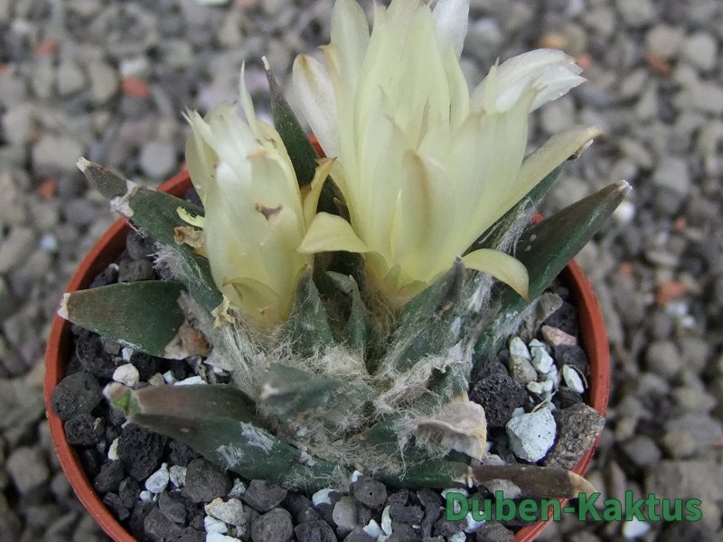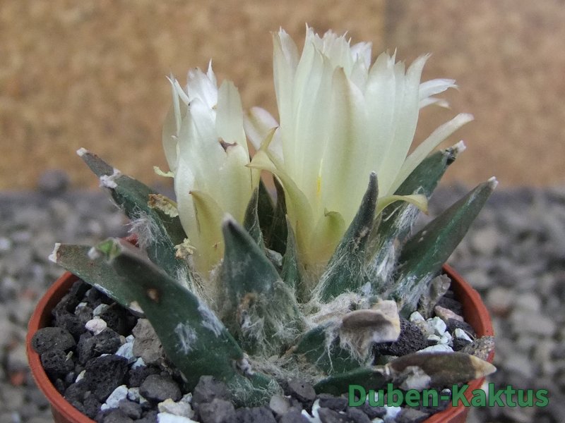 Minimálně 8 let stará rostlina. Vzrůstná forma Ariocarpus trigonus. Výběrov kategorie Ariocarpusů. Kaktusy jsou zde foceny, evidovány a prodávány individuálně. Na posledních fotografiích je porovnání s kaktusem v květináči 5,5 cm.