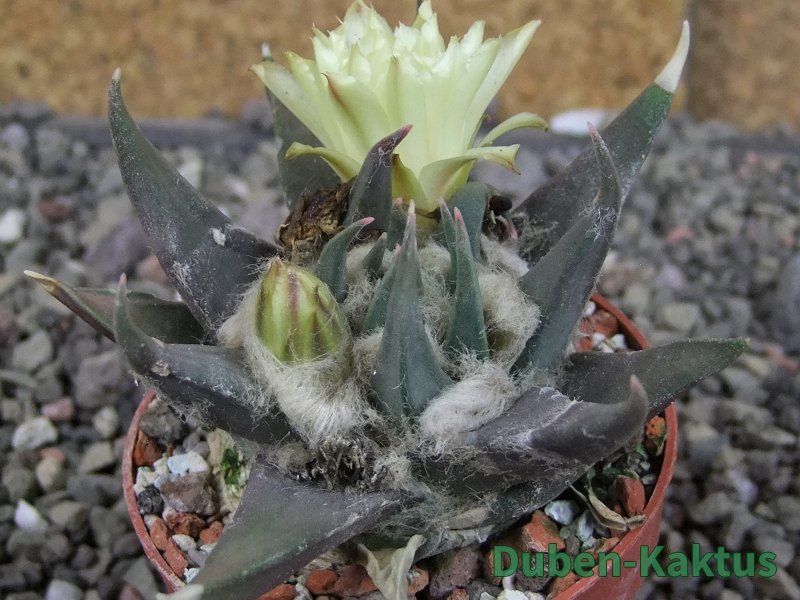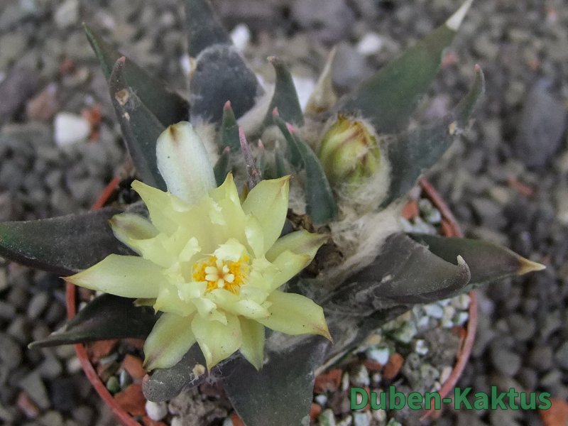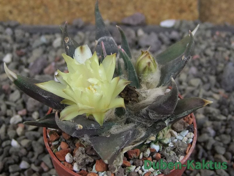 Minimálně 20 let stará rostlina. Vzrůstná forma Ariocarpus trigonus. Výběrov kategorie Ariocarpusů. Kaktusy jsou zde foceny, evidovány a prodávány individuálně. Na posledních fotografiích je porovnání s kaktusem v květináči 5,5 cm.