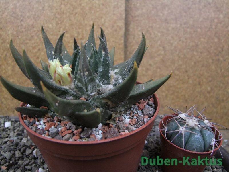 Minimálně 20 let stará rostlina. Vzrůstná forma Ariocarpus trigonus. Výběrov kategorie Ariocarpusů. Kaktusy jsou zde foceny, evidovány a prodávány individuálně. Na posledních fotografiích je porovnání s kaktusem v květináči 5,5 cm.