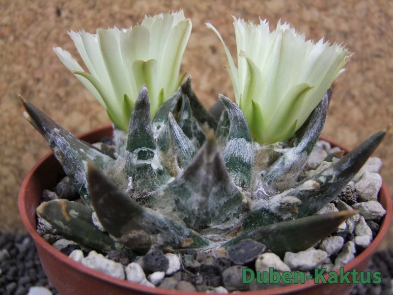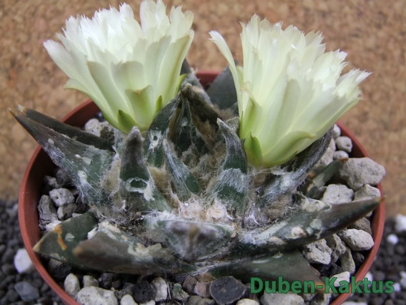 Minimálně 15 let stará rostlina. Vzrůstná forma Ariocarpus trigonus. Výběrov kategorie Ariocarpusů. Kaktusy jsou zde foceny, evidovány a prodávány individuálně. Na posledních fotografiích je porovnání s kaktusem v květináči 5,5 cm.