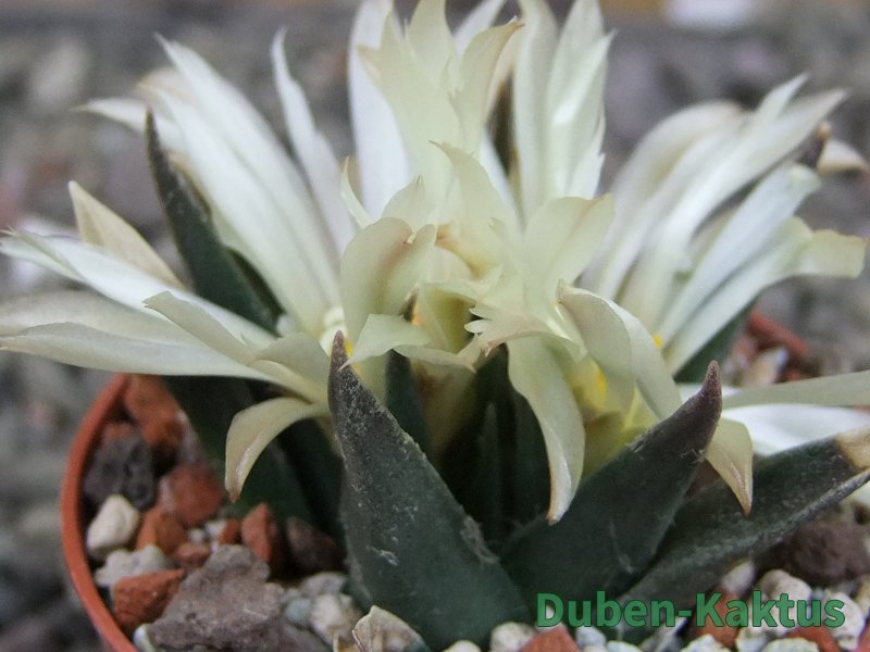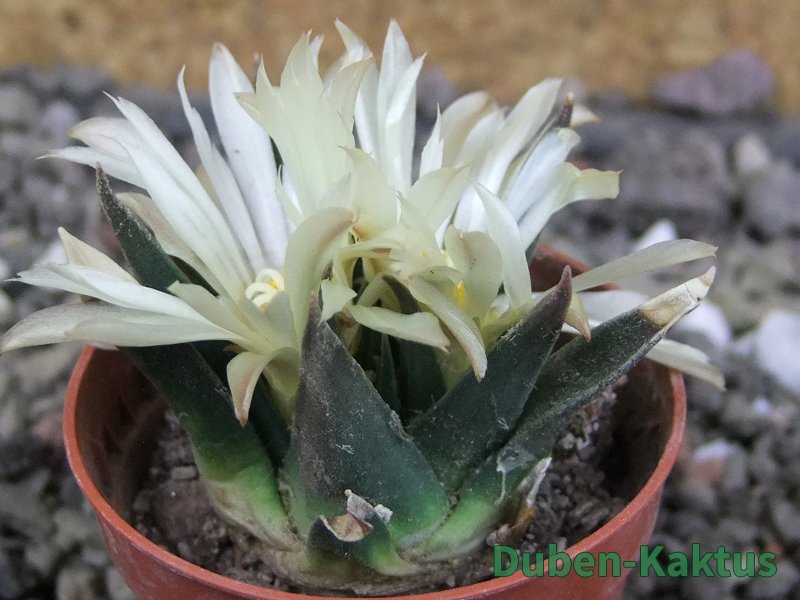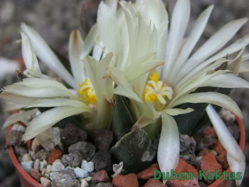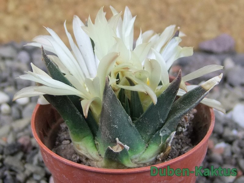 Ariocarpus trigonus horacekii, miniaturní trigonus, odlišný od dalších trigonusů. Kvete jako malý.