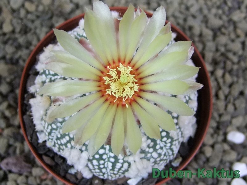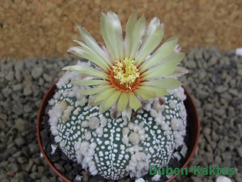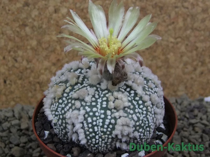 Tento kaktus vznikl selekcí Astrophytum Hanazano Kabuto. V pěstírně kaktusů Duben Kaktus tyto rostliny šlechtíme mnoho let. Kvalitní sbírková rostlina. Na poslední fotografii je porovnání s kaktusem v květináči 5,5 cm.