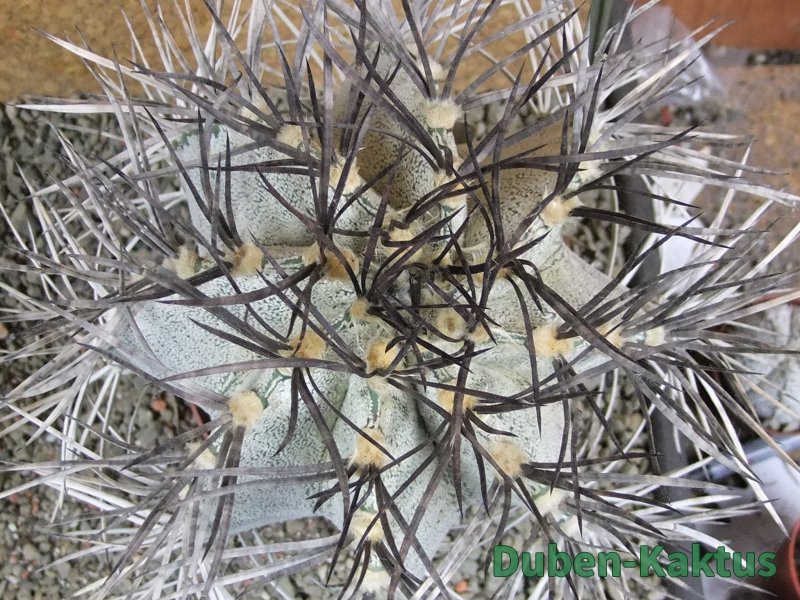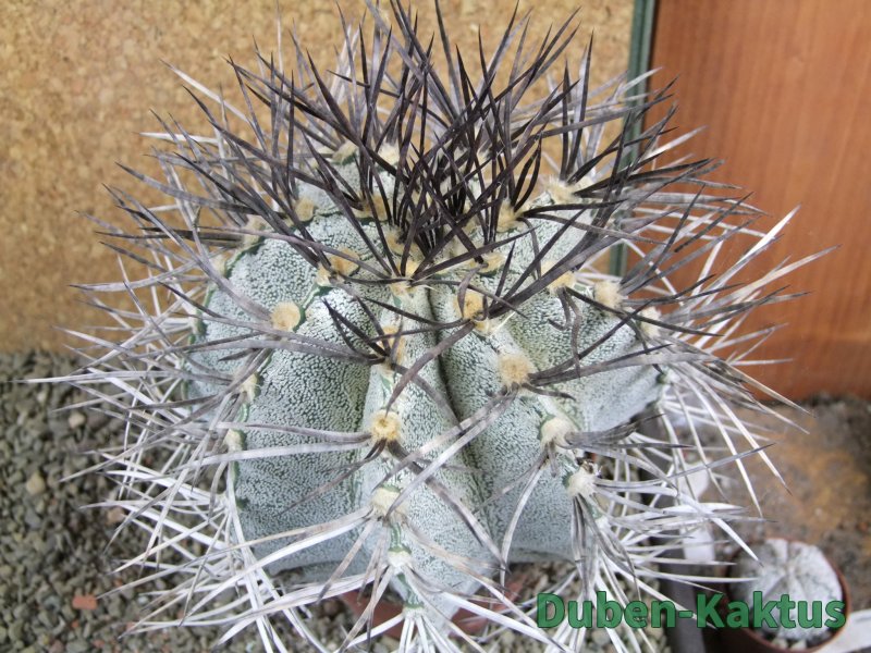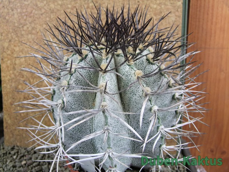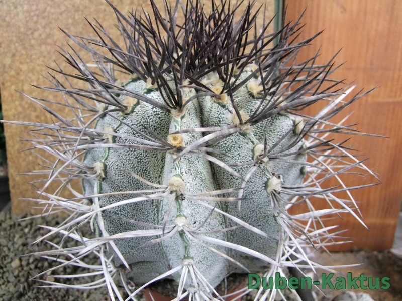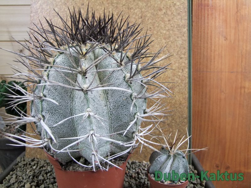 Dospělá, sbírková rostlina Astrophytum niveum. V náší pěstírně máme početnou populaci mladých rostlin. Na poslední fotografii porovnání s kaktusem v květináči 5,5 cm.
