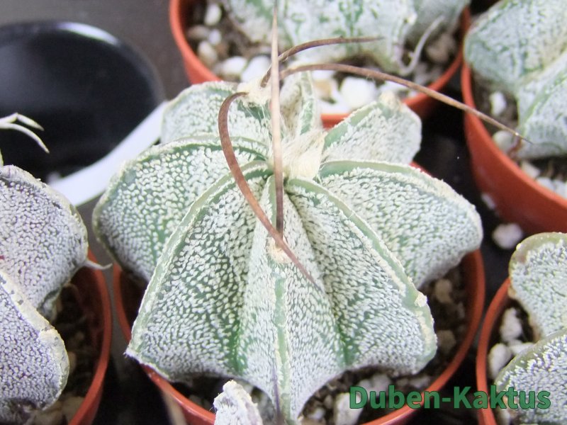 Astrophytum niveum od výsevu velmi tvrdě pěstovaný kaktus v Jasenné. Nádherný mexický kaktus s přibývajícím věkem přibudou ostny. Minimální stáří šest let.
