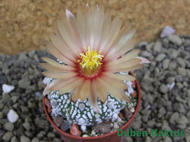 Další vlna z letošních květů. Pracovně jsem vytvořil čtyři kategorije A+, A, A/B a B. I v kategoriji B jsou rostliny se zajímavými květy. Ta je v nabídce Kaktusy, také na našem webu - Astrophytum hybrid B flower. V příštích dnech budeme doplňovat naši nabídku o další rostliny. Dle zkušeností, nejen našich, ale i dalších pěstitelů je možné, že květy v dalším cyklu kvetení budou mít jiný odstín. Toto není alibismus, jen málá zkušenost. Dostáváte autentickou rostlinu, jednotlivě vybranou, focenou, označenou a uloženou mimo skupinu. Fotografije nejsou upraveny ve fotoshopu. Věřte, že po dostatečném zakořenění Vám udělá mnoho radosti. Tomáš Duben senior.