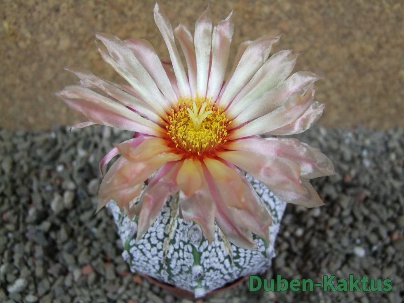 Další vlna z letošních květů. Pracovně jsem vytvořil čtyři kategorije A+, A, A/B a B. I v kategoriji B jsou rostliny se zajímavými květy. Ta je v nabídce Kaktusy, také na našem webu - Astrophytum hybrid B flower. V příštích dnech budeme doplňovat naši nabídku o další rostliny. Dle zkušeností, nejen našich, ale i dalších pěstitelů je možné, že květy v dalším cyklu kvetení budou mít jiný odstín. Toto není alibismus, jen málá zkušenost. Dostáváte autentickou rostlinu, jednotlivě vybranou, focenou, označenou a uloženou mimo skupinu. Fotografije nejsou upraveny ve fotoshopu. Věřte, že po dostatečném zakořenění Vám udělá mnoho radosti. Tomáš Duben senior.