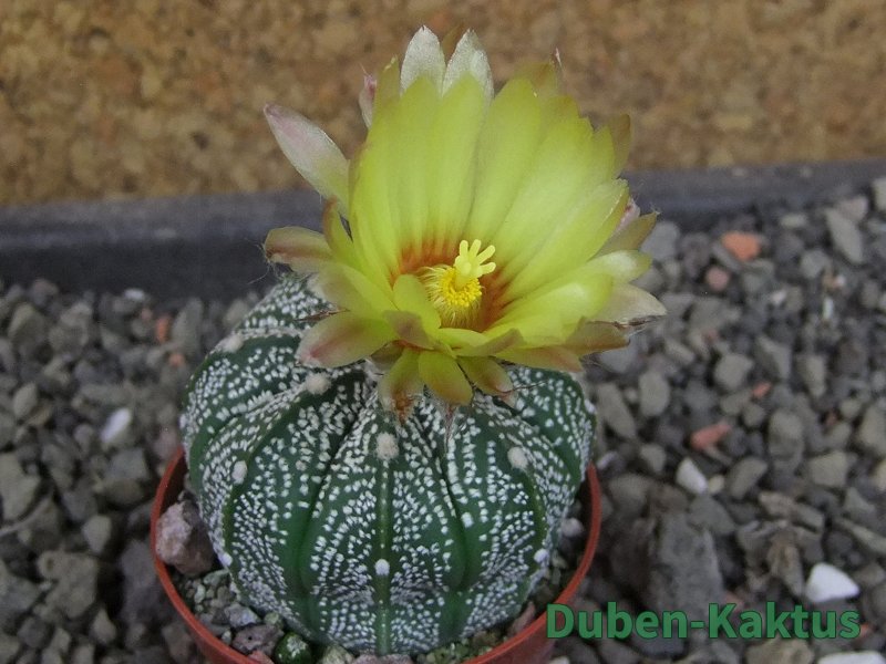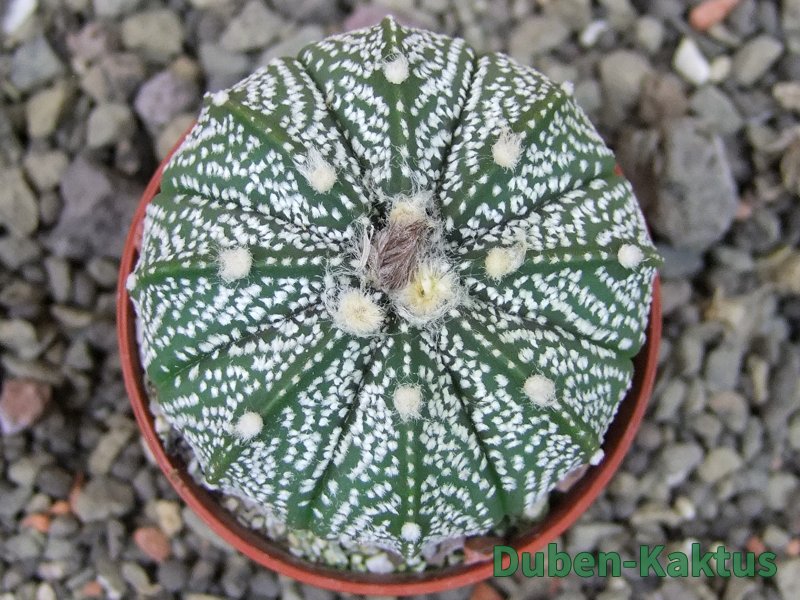 V současné době zavádíme "nové kvalitativní označení rostlin" Astrophytum z Jasenné. Je to především ulehčení naší práce a alesponˇnějaké označení rostliny. Tyto kaktusy od prvního dopadu pylu na pestík vznikly v pěstírně kaktusů Duben-kaktus. Většinou jsou to multihybridy a pokud je nějaká rostlina blíže Astrophxtum niveum nevo capricorna či asterias nebo Super Kabuuto. není lehké označit. Nebo F2 CoKabu x NivMyr 24.6.92 AU.