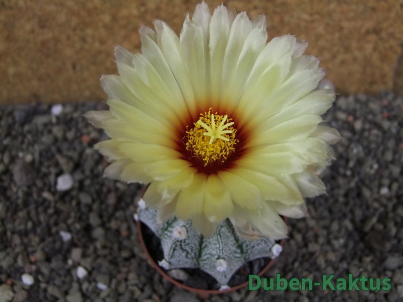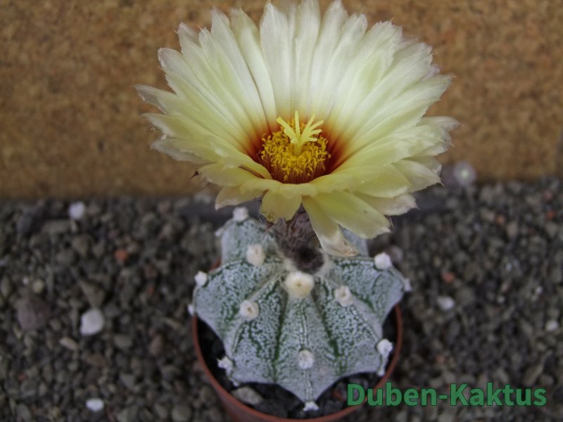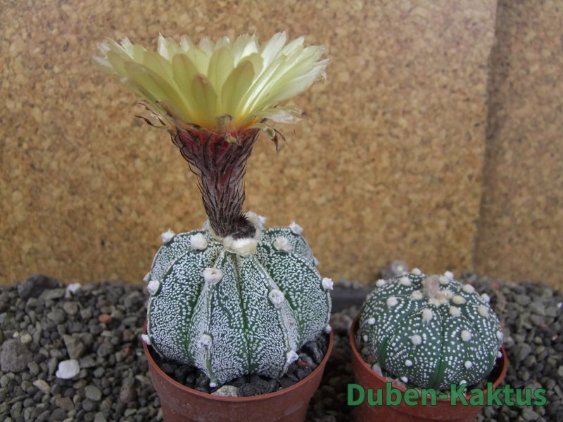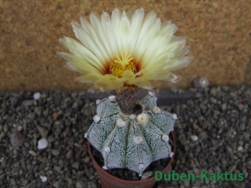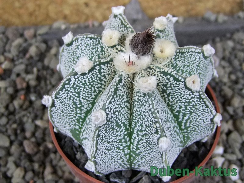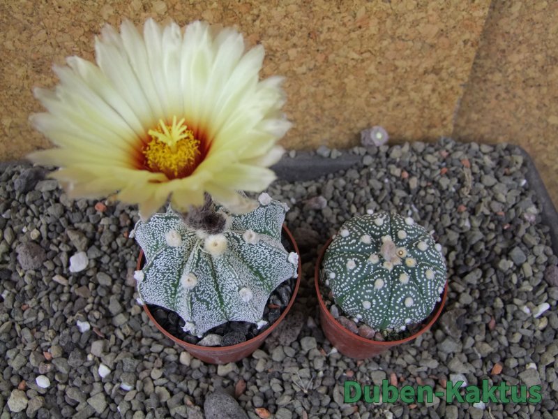 V současné době zavádíme "nové kvalitativní označení rostlin" Astrophytum z Jasenné. Je to především ulehčení naší práce a alesponˇnějaké označení rostliny. Tyto kaktusy od prvního dopadu pylu na pestík vznikly v pěstírně kaktusů Duben-kaktus. Většinou jsou to multihybridy a pokud je nějaká rostlina blíže Astrophxtum niveum nevo capricorna či asterias nebo Super Kabuuto. není lehké označit. Nebo F2 CoKabu x NivMyr 24.6.92 AU.