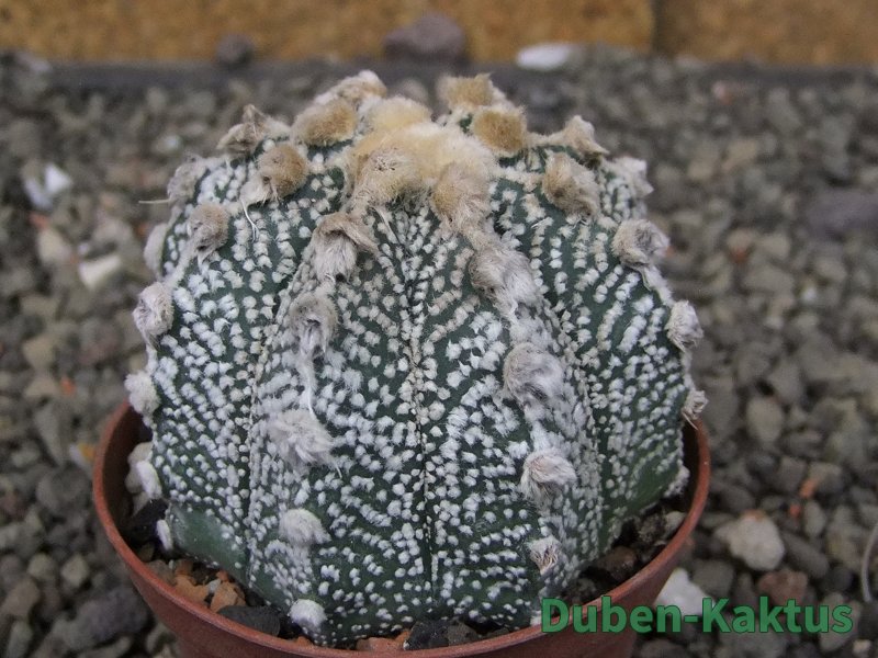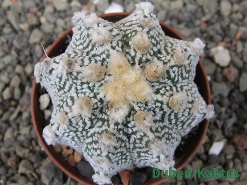 V současné době zavádíme "nové kvalitativní označení rostlin" Astrophytum z Jasenné. Je to především ulehčení naší práce a alesponˇnějaké označení rostliny. Tyto kaktusy od prvního dopadu pylu na pestík vznikly v pěstírně kaktusů Duben-kaktus. Většinou jsou to multihybridy a pokud je nějaká rostlina blíže Astrophxtum niveum nevo capricorna či asterias nebo Super Kabuuto. není lehké označit. Nebo F2 CoKabu x NivMyr 24.6.92 AU.