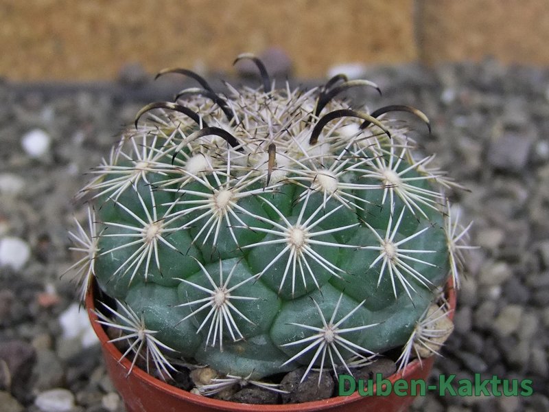 Kaktus vypěstovaný v pěstírně kaktusů Duben Kaktus. Zajímavá Coryphantha. V mládí choulostivá na kořenové choroby, později v kamenitém substrátu roste bez problémů. V juvenilním stadiu má pectinátní ostny. Na poslední fotografii je mateční rostlina.