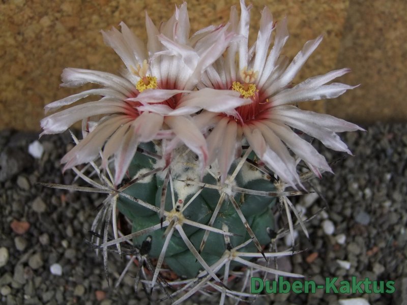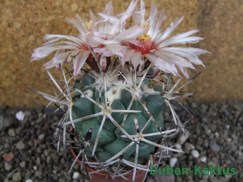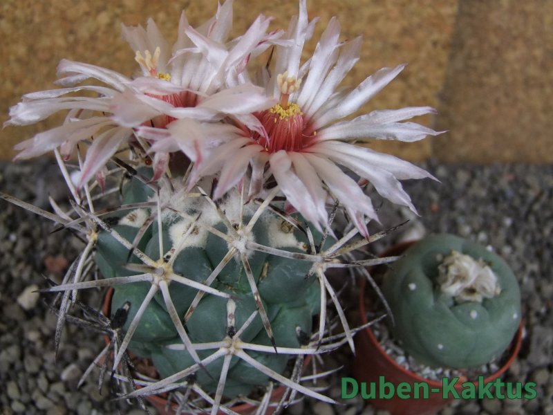 Dospělí kvetoucí semenáč Coryphantha poselgeriana valida Cerro Bola, podobná s El Hundido. Na posledních fotografiích je porovnání s kaktusem v květináči 5,5 cm.