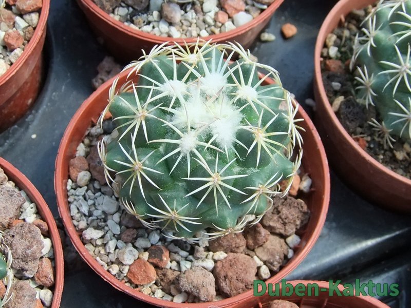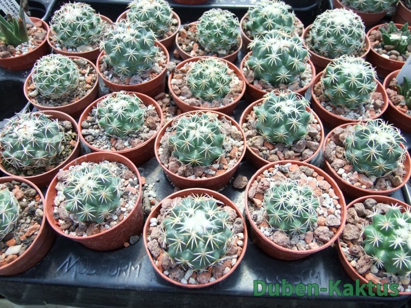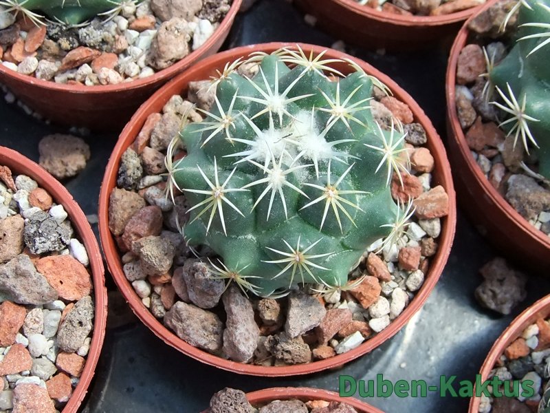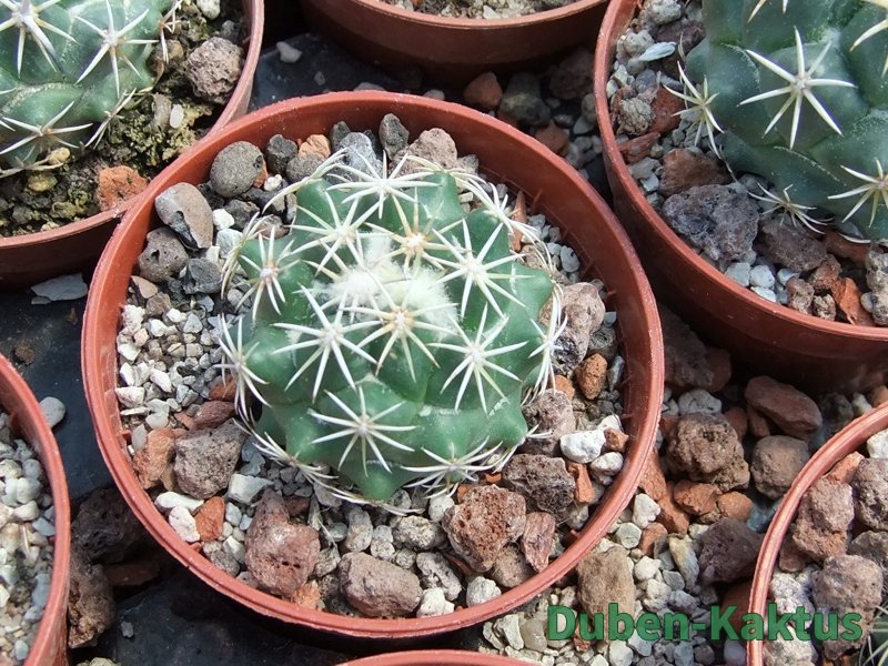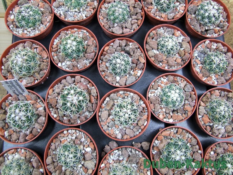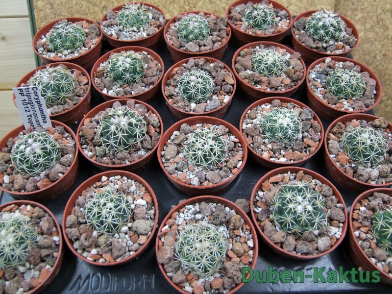Standardní kategorie, na fotografii je mateční rostlina Coryphantha tripugionacantha Tepetatita, Zacatecas. Semenáče jsou zatím v juvenilním stadiu, pouze pektinátní trn. Středové trny již začínají vyrůstat.