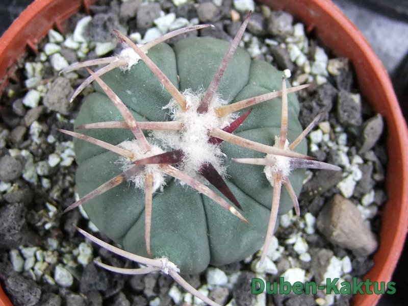 Výběrová rostlina Echinocactus horizonthalonius, kaktusy jsou foceny a prodávány individuálně. První jedinci již začínají kvést. Na posledních fotografiích porovnání s kaktusem v květináči 5,5 cm. Echinocactus horizonthalonius, zajímavý kaktus Mexico a USA. Další, levnější horizonthalonius můžete koupit v kategorii Kaktusy standard a podkategorii Ostatní od 80 Kč.