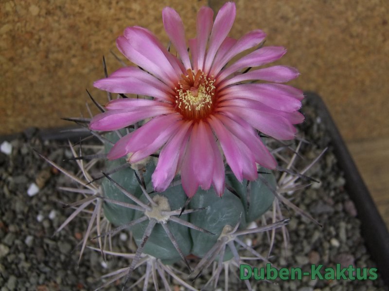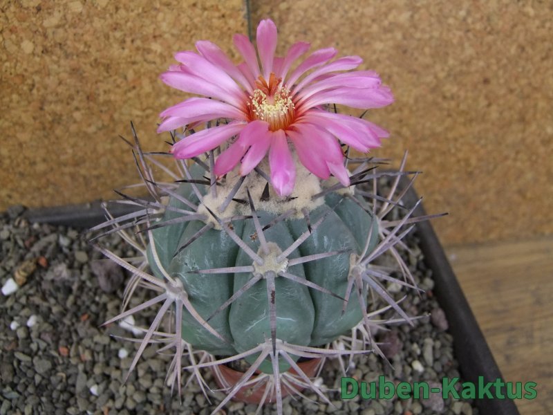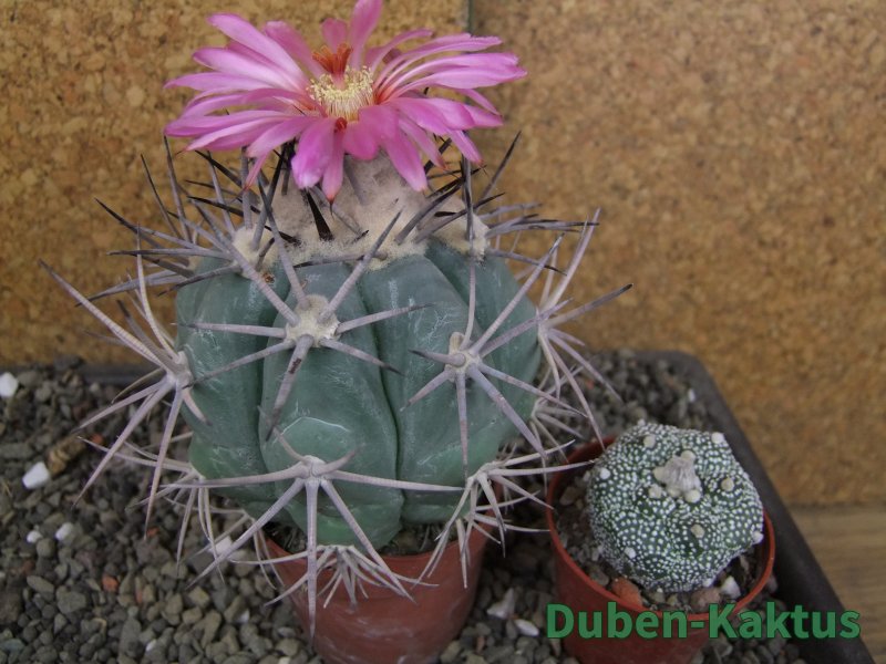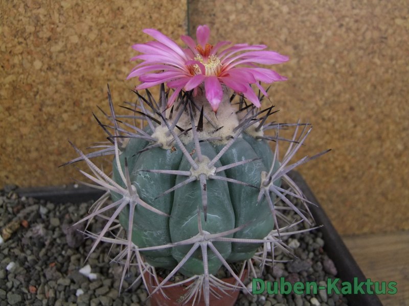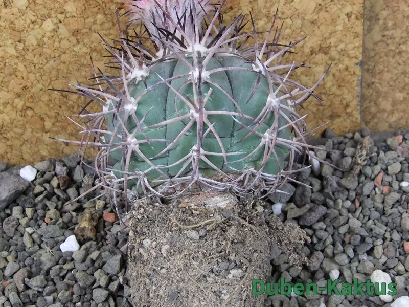 Sbírková rostlina Echinocactus horizonthalonius. Roubovaný na Ferocactus glaucescenc - neviditelný. Na posledních fotografiích je porovnání s kaktusem v květináči 5,5 cm. Výběrová rostlina. Další horizonthaloniusy můžete koupit v kategorii Kaktusy standard a podkategorii Ostatní za 120 Kč.