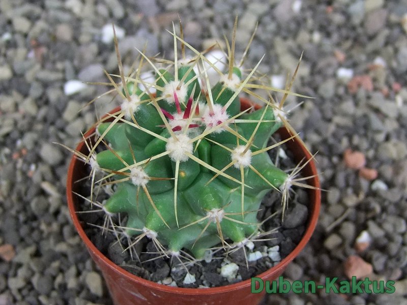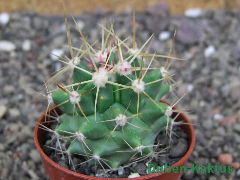 Semenáč - originální rostlina. Ferobergia - generativní hybrid Ferocactus a Leuchtenbergia principis. Vata mezi žebry není plíseň nebo škůdce. Je to přirozená součást rostliny.
