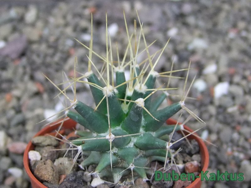 Semenáč - originální rostlina. Ferobergia - generativní hybrid Ferocactus a Leuchtenbergia principis. Vata mezi žebry není plíseň nebo škůdce. Je to přirozená součást rostliny.