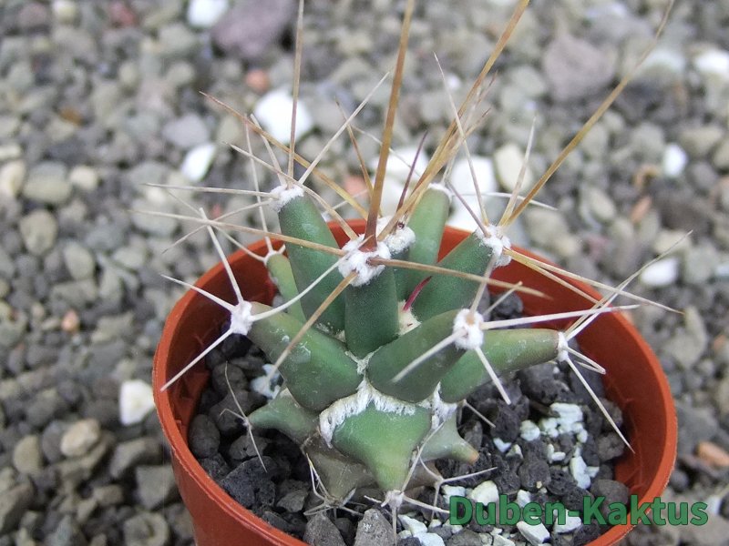 Semenáč - originální rostlina. Ferobergia - generativní hybrid Ferocactus a Leuchtenbergia principis. Vata mezi žebry není plíseň nebo škůdce. Je to přirozená součást rostliny.