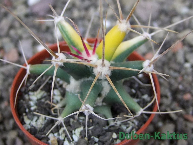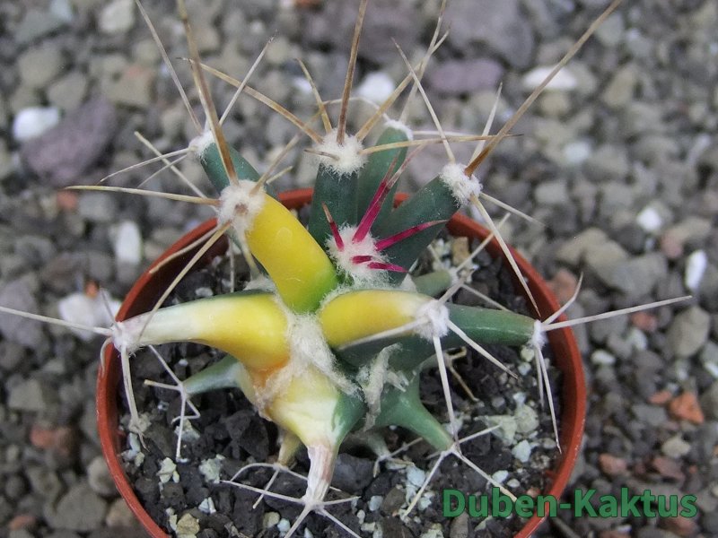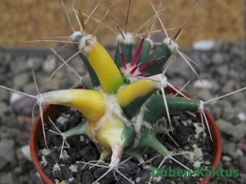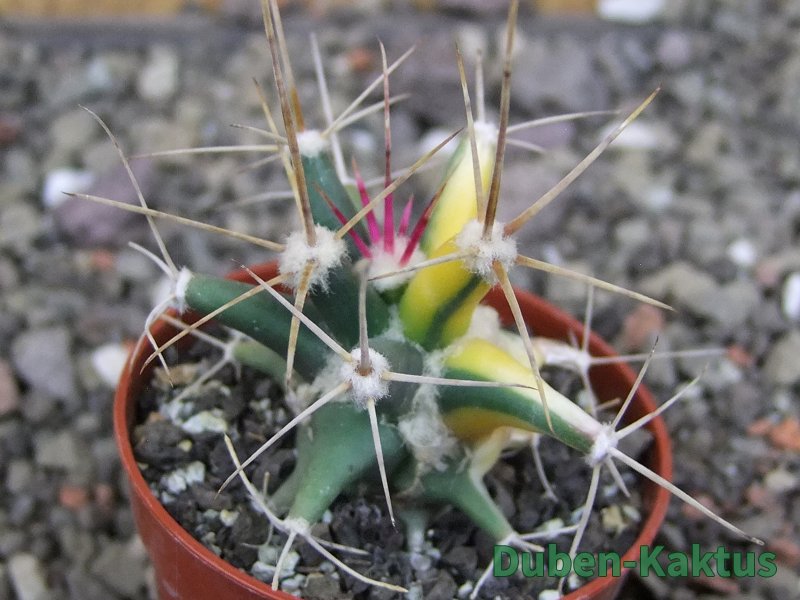 Semenáč - originální rostlina. Ferobergia - generativní hybrid Ferocactus a Leuchtenbergia principis. Vata mezi žebry není plíseň nebo škůdce. Je to přirozená součást rostliny.