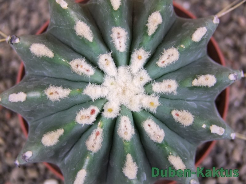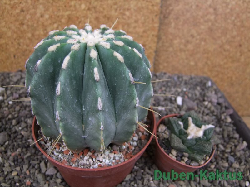 Ferocactus glaucescens inermis, dospívající výběrová rostlina, kaktus je prodáván a focen individuálně. Na poslední fotografii porovnání s kaktusem v květináči 5,5 cm.
