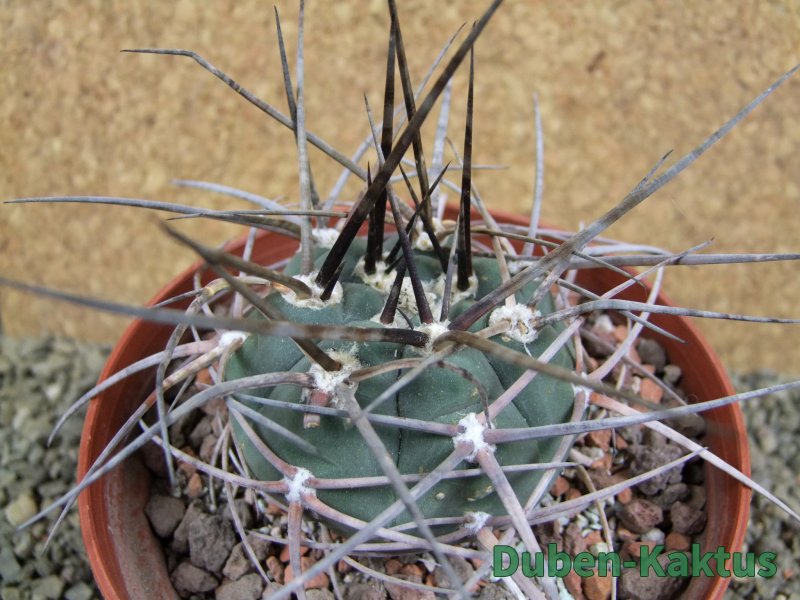 Semenáček kaktusu Gymnocalycium armatum. Výběrová rostlina, minimálně 14 let starý kaktus. Na posledních fotografiích je porovnání s kaktusem v květináči 5,5 cm. Výběrová kategorie, kaktusy jsou foceny a prodávány individuálně.