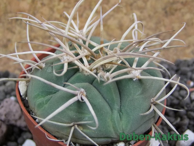 Kulturní rostlina, semenáč Gymnocalicium cardenasianum od Carrizal. Květuschopný kaktus, tvrdě pěstovaný v pěstírně kaktusů v Jasenné.