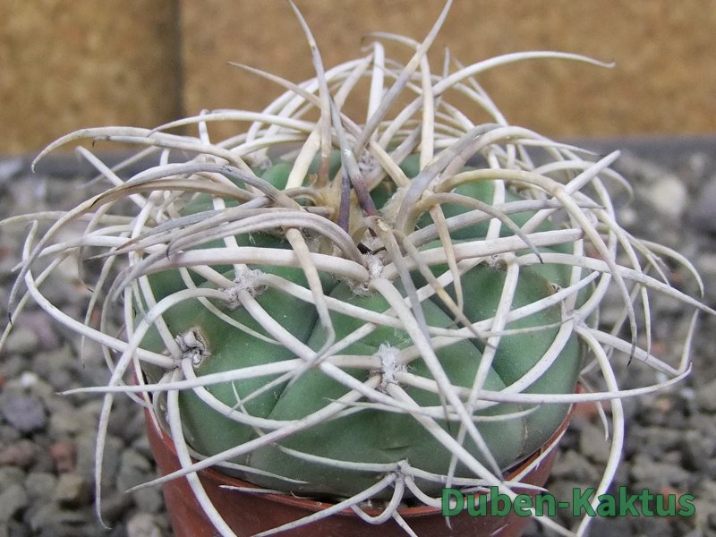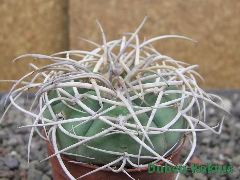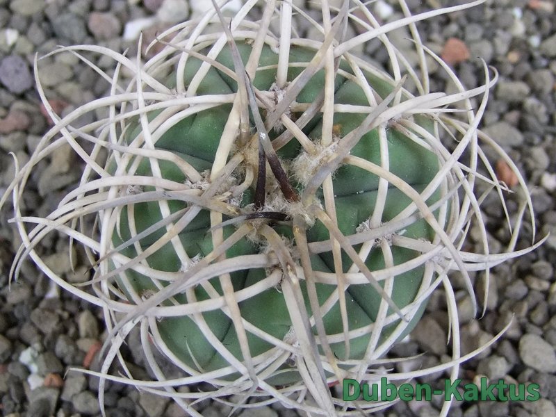 Kulturní rostlina, semenáč Gymnocalicium cardenasianum Jižně od Carrizal. Květuschopný kaktus, tvrdě pěstovaný v pěstírně kaktusů v Jasenné.
