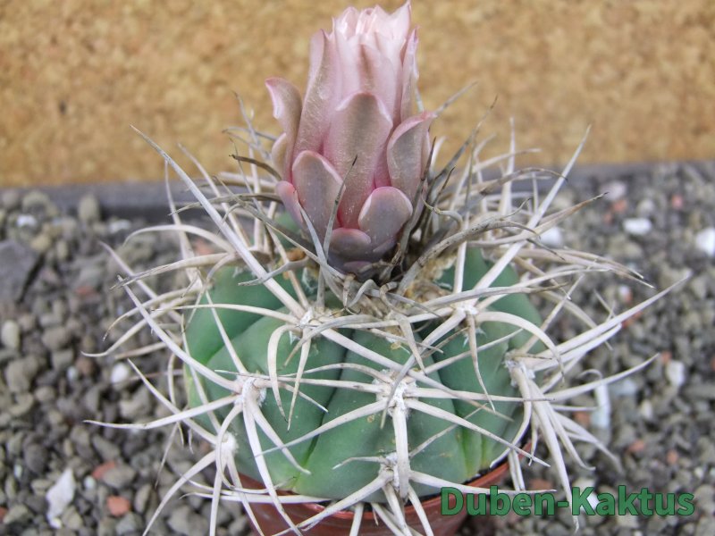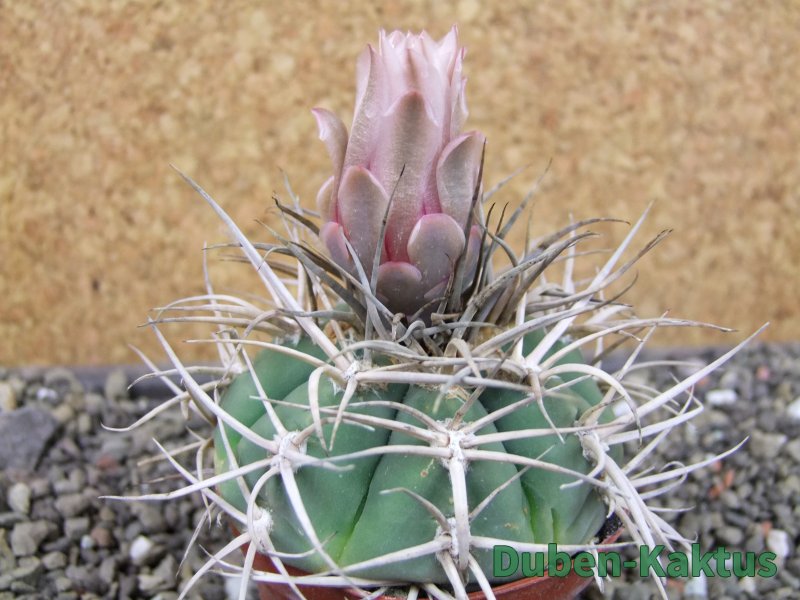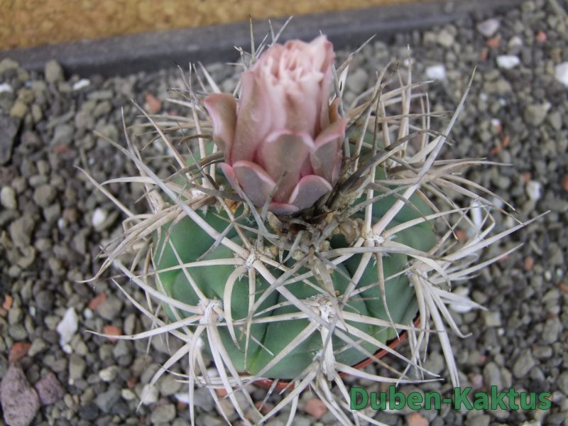 Kulturní rostlina, semenáč Gymnocalicium cardenasianum Jižně od Carrizal. Květuschopný kaktus, tvrdě pěstovaný v pěstírně kaktusů v Jasenné.