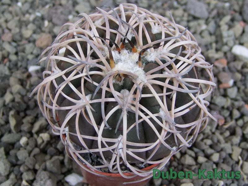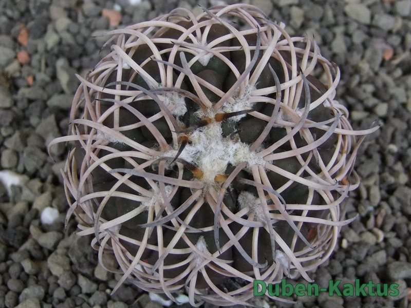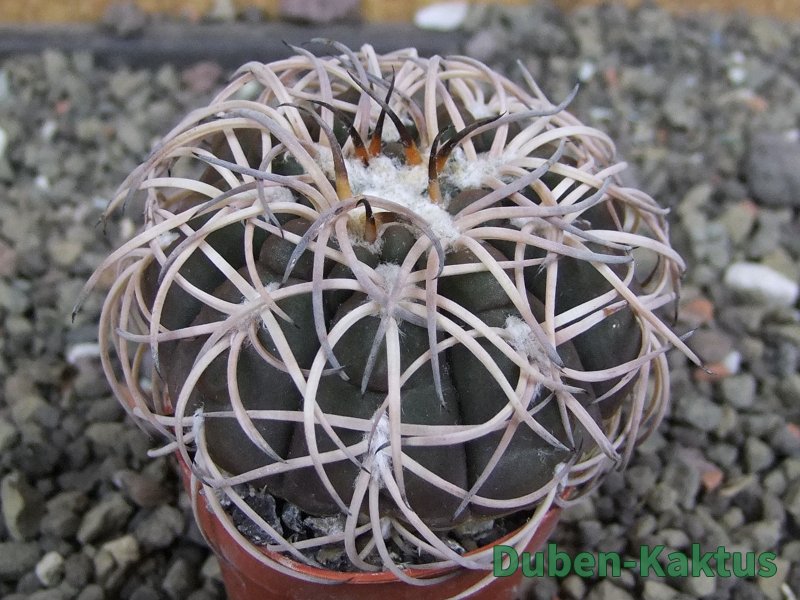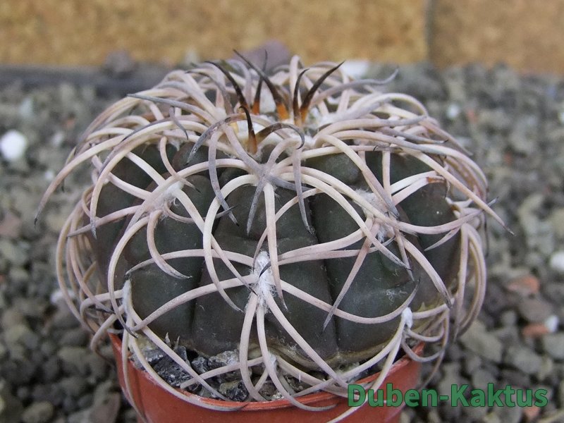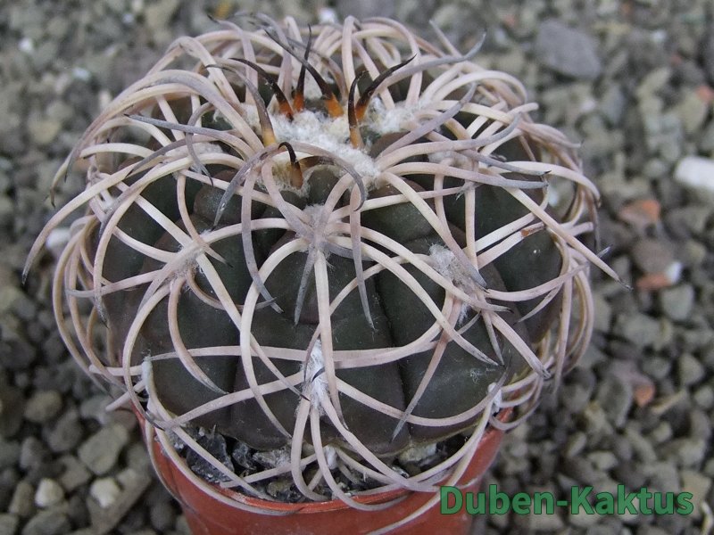 Semenáček kaktusu Gymnocalycium spegazinii. Výběrová rostlina, minimálně šest let starý kaktus.