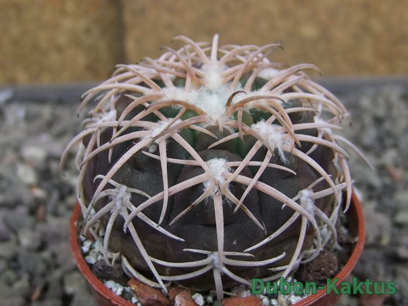 Semenáček kaktusu Gymnocalycium spegazinii. Výběrová rostlina, minimálně šest let starý kaktus.
