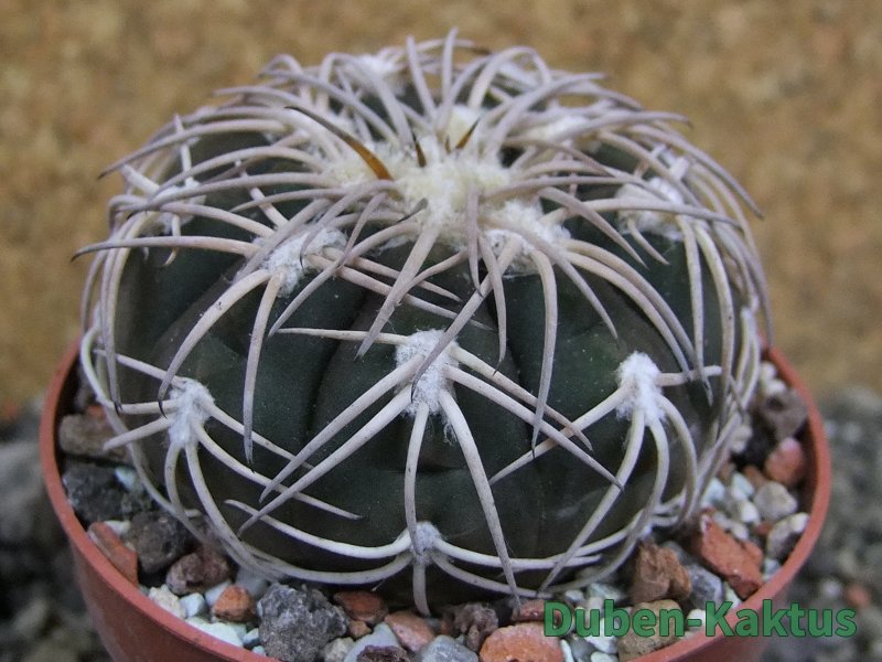 Semenáček kaktusu Gymnocalycium spegazinii. Výběrová rostlina, minimálně šest let starý kaktus.