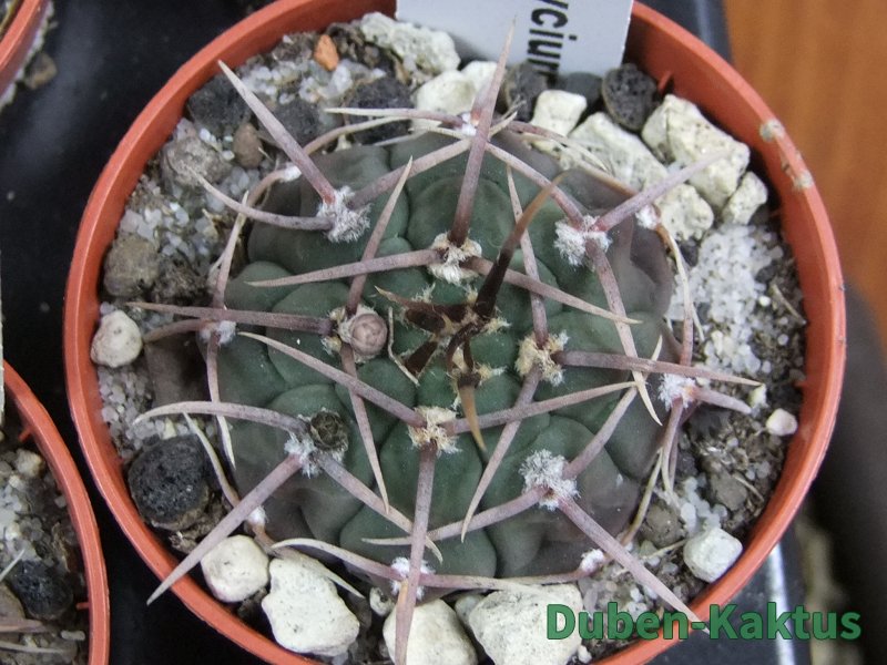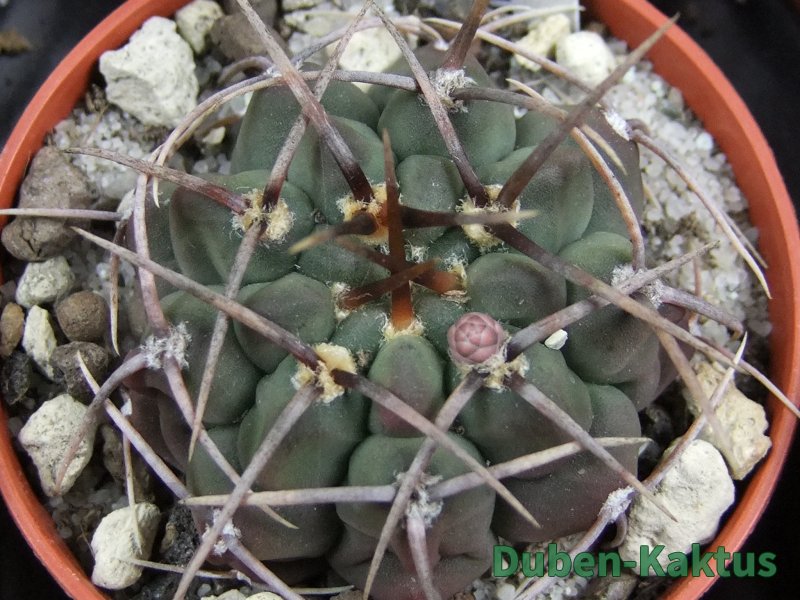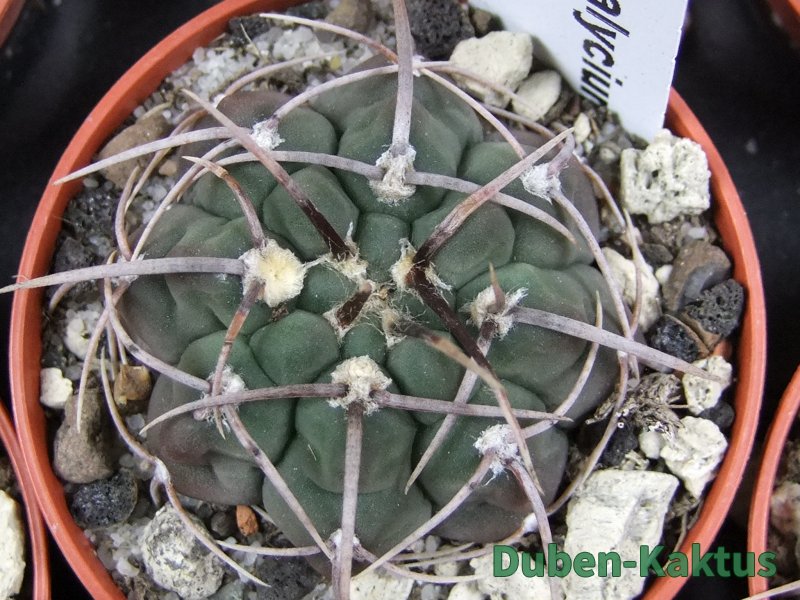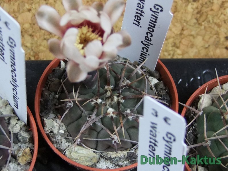 Zajímavá forma Gymnocalycium watteri, kaktus diskovitého, plochého růstu i v dospělém věku. Pochází z drápkaté selekce.