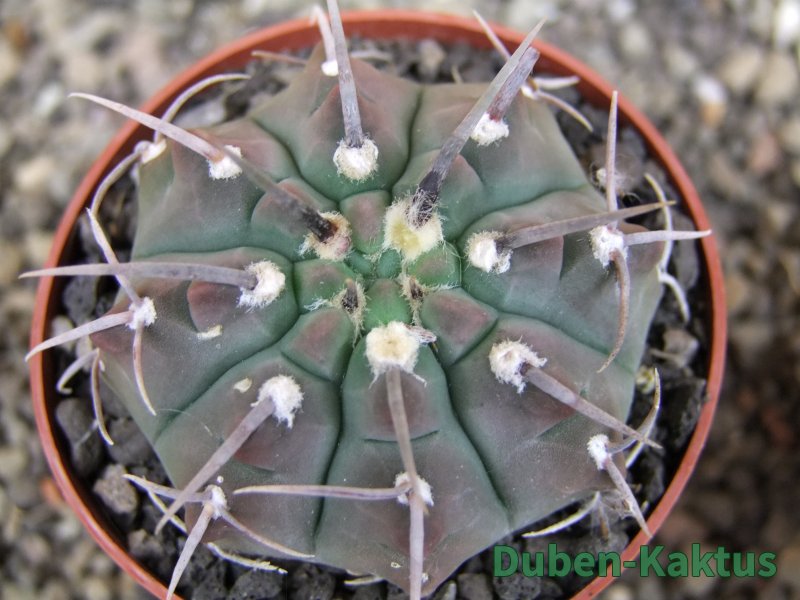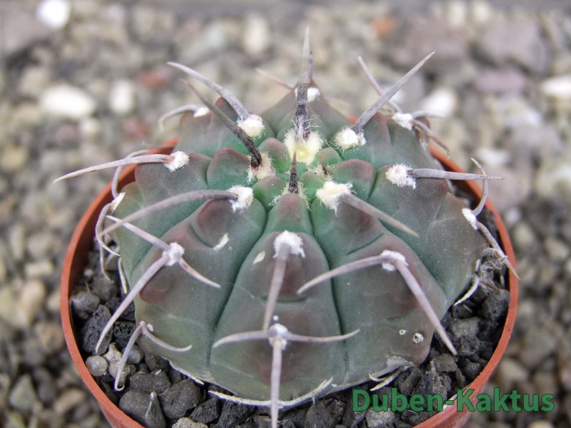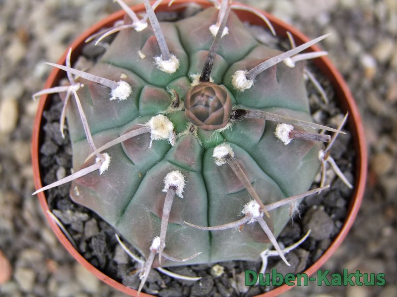Zajímavá forma Gymnocalycium vatteri, kaktus diskovitého, plochého růstu i v dospělém věku. Pochází z drápkaté selekce.