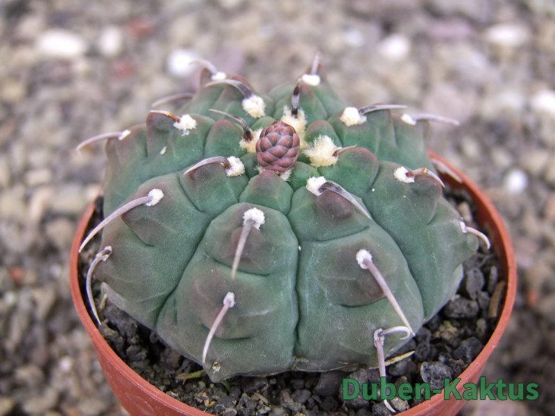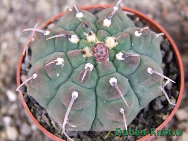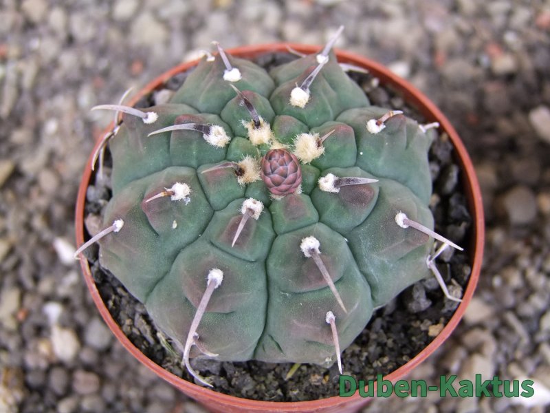 Zajímavá forma Gymnocalycium vatteri, kaktus diskovitého, plochého růstu i v dospělém věku. Pochází z drápkaté selekce.