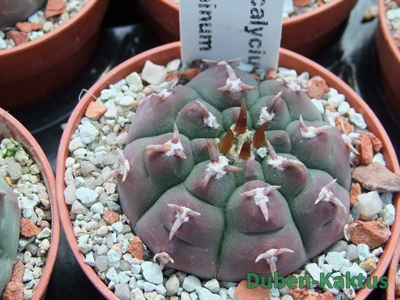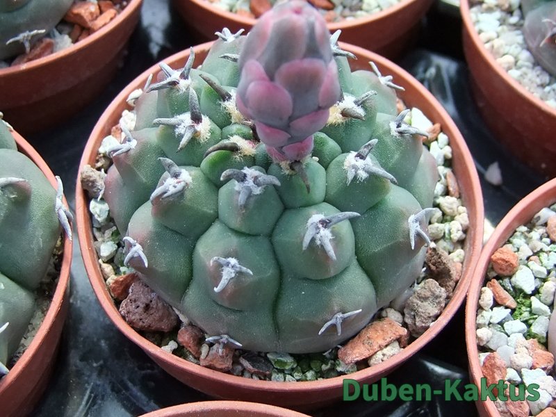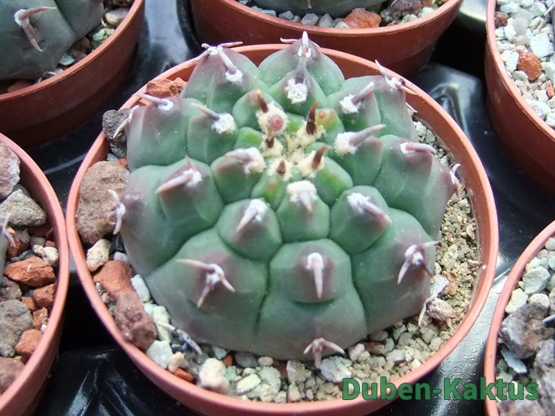 Zajímavá forma Gymnocalycium watteri, kaktus diskovitého, plochého růstu i v dospělém věku. Semenáče jsou z 80 % drápkaté. Tyto kaktusy selektujeme již 20 let.