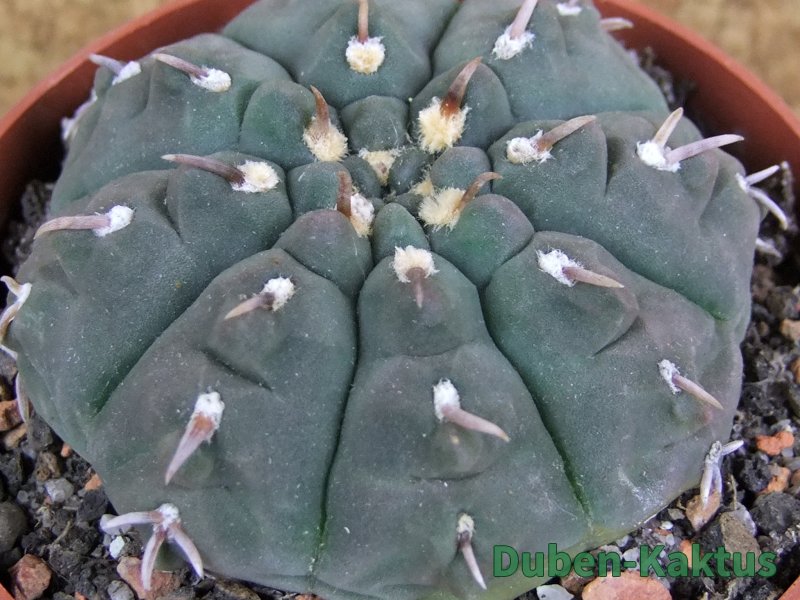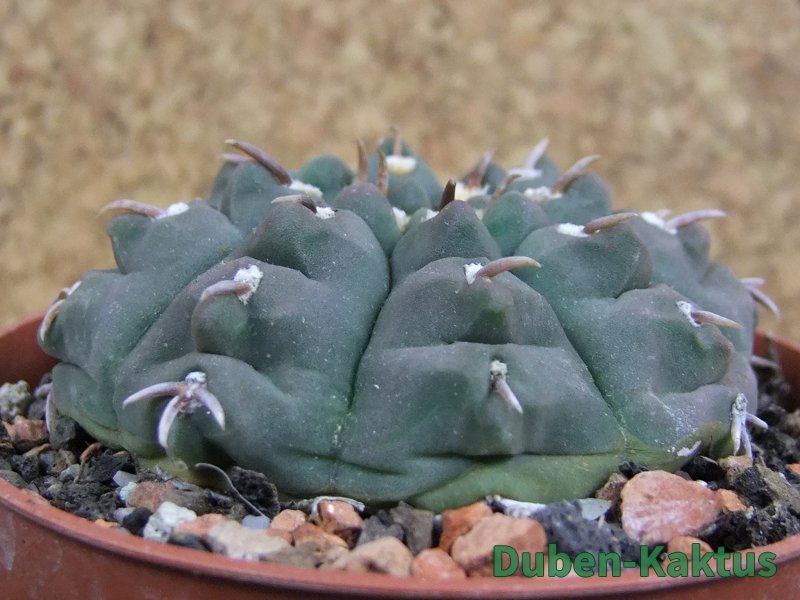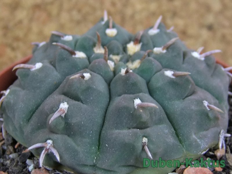 Gymnocalycium watteri unguispinum, postupnou selekcí jsme vyšlechtili Gymnocalycium s krátkými drápkatými trny. Kaktus, který zachovává diskovitý tvar i po 20 letech. Pří výsevu těchto kaktusů je 80% drápkatých rostlin.
