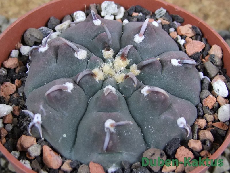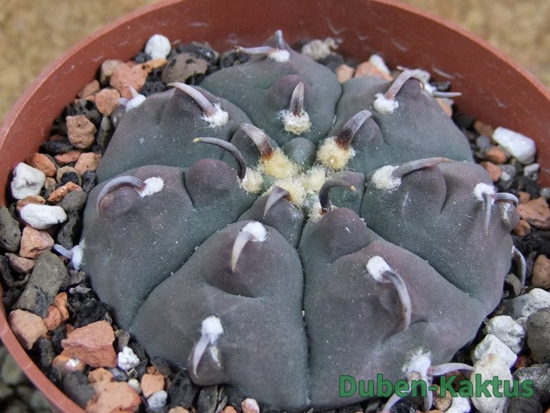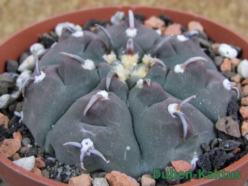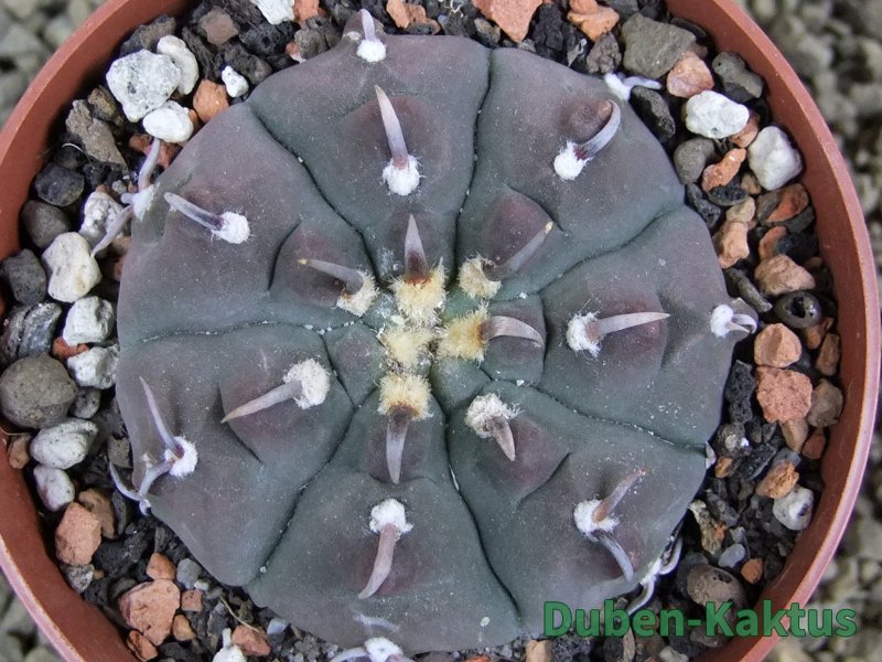 Gymnocalycium watteri unguispinum, postupnou selekcí jsme vyšlechtili Gymnocalycium s krátkými drápkatými trny. Kaktus, který zachovává diskovitý tvar i po 20 letech. Pří výsevu těchto kaktusů je 80% drápkatých rostlin.
