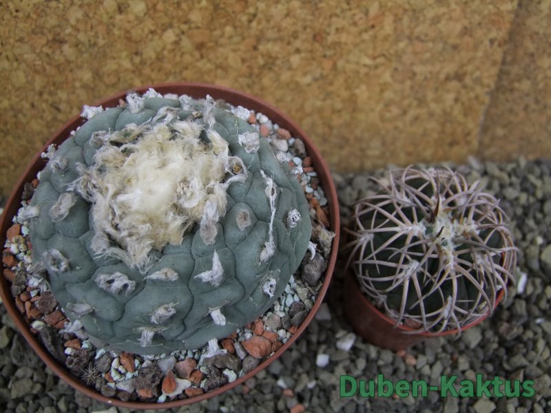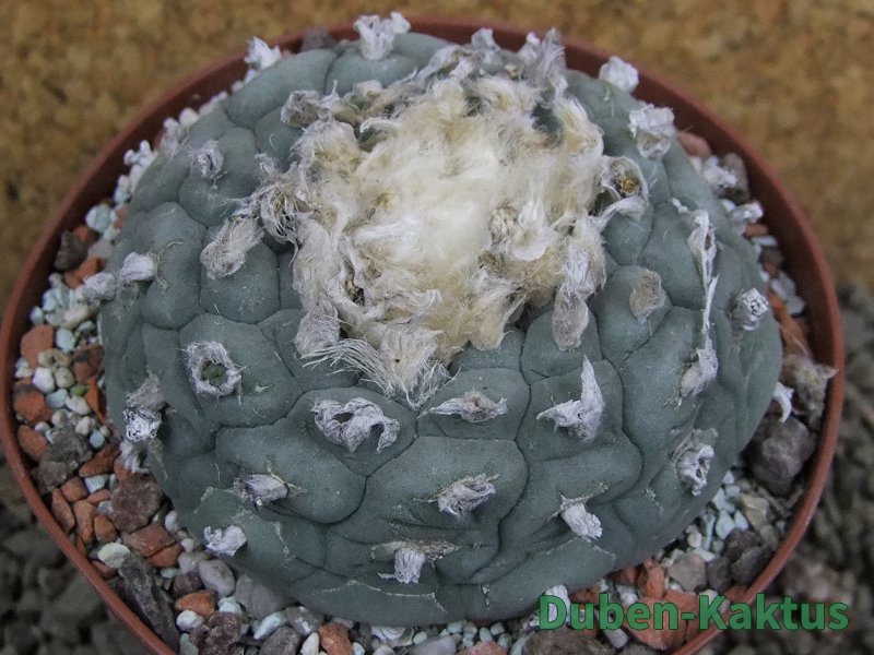 Minimálně 30 let stará Lophophora fricii Viesca, bíle kvetoucí fricii od Viesky, většina rostlin kvete bíle. Výběrová rostlina. Na posledních fotografiích je porovnání s kaktusem v květináči 5,5 cm.