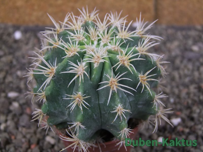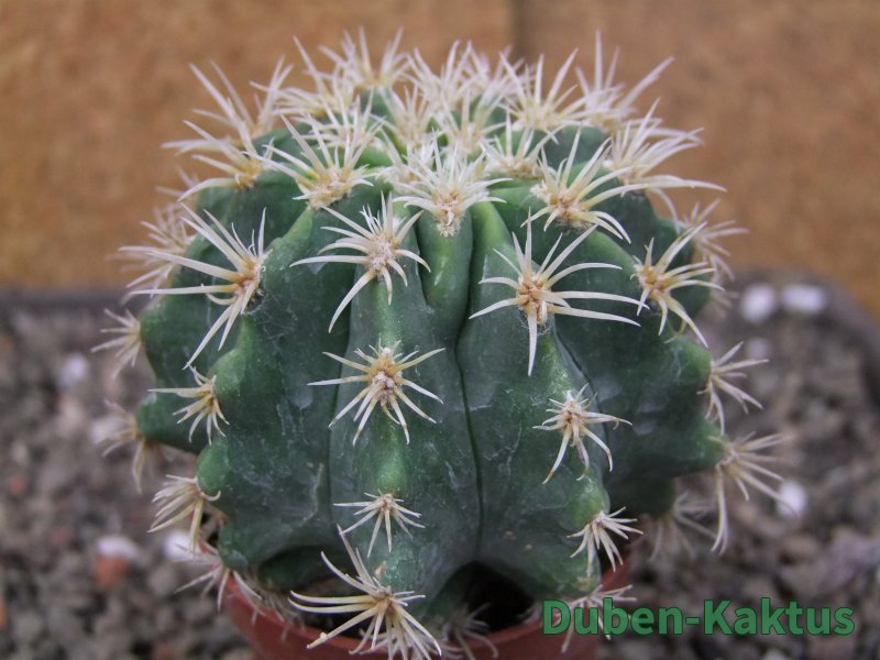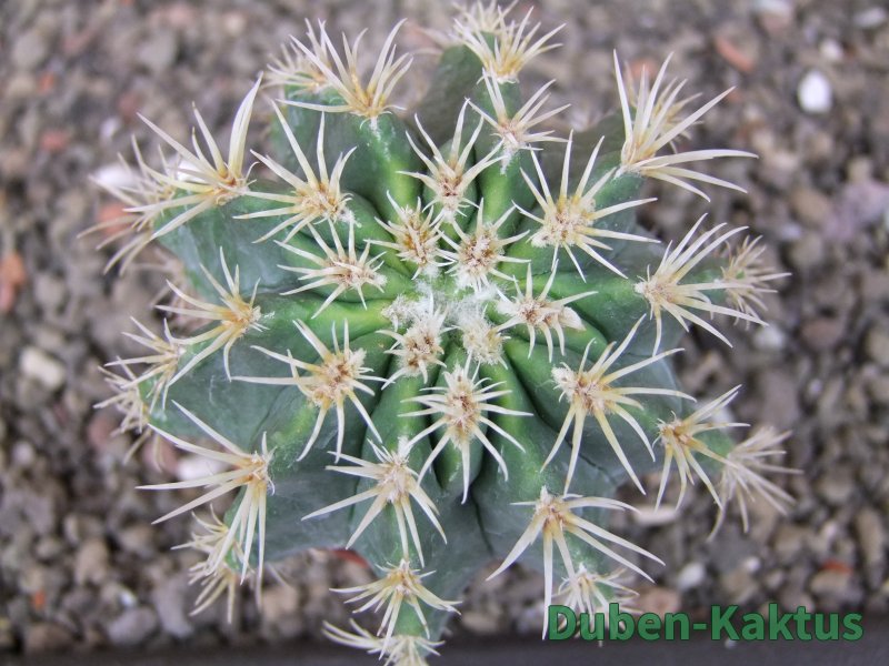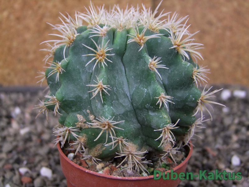 Ustálená Chimera Pelecyphora aseliphormis a Ferocactus. První rostlina od tohoto klonu v prodeji. rostlina, kaktus je roubovaný. Při tvrdším pěstování dojde ke zvýraznění pectinátních ostnů. Na posledních fotografiích je porovnání s kaktusem v květináči 5,5 cm.