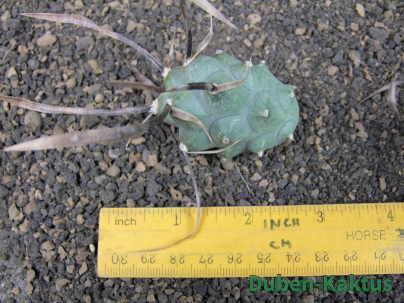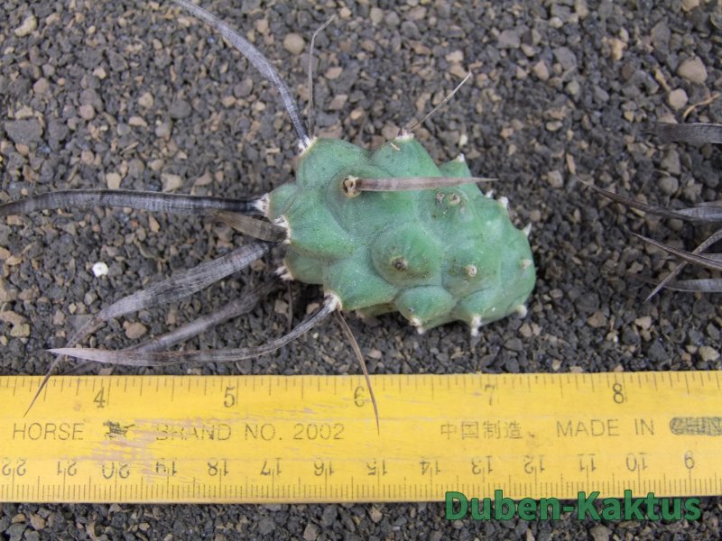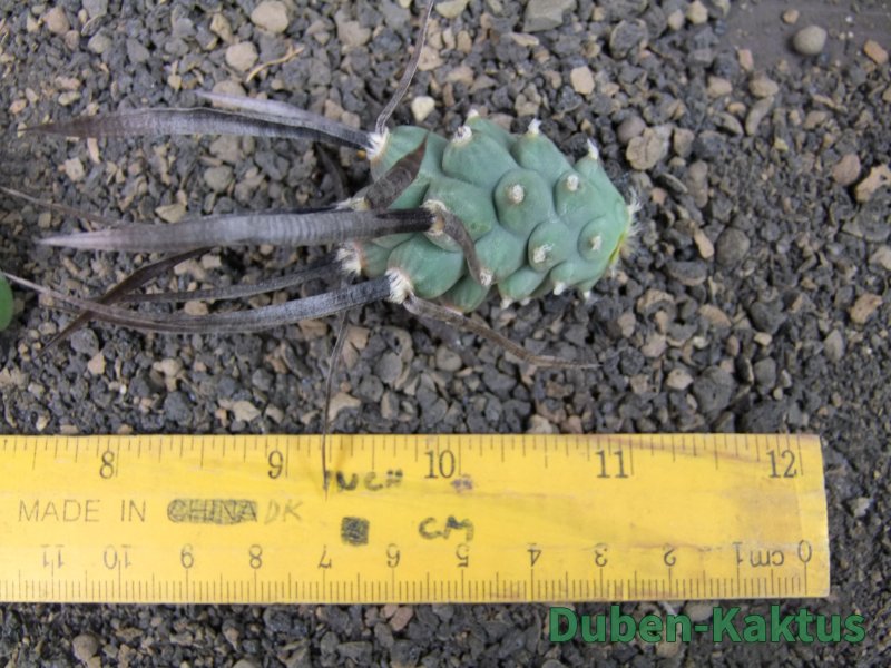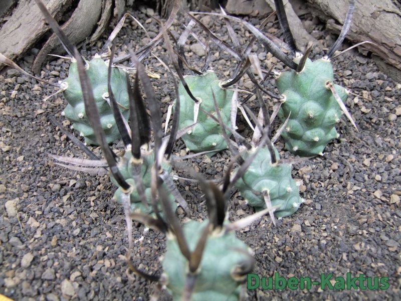 Jiná forma tradičního Tephrocactus articulatus papyracanthus. Tato vytváří větší placky a černé ostny.