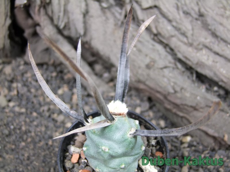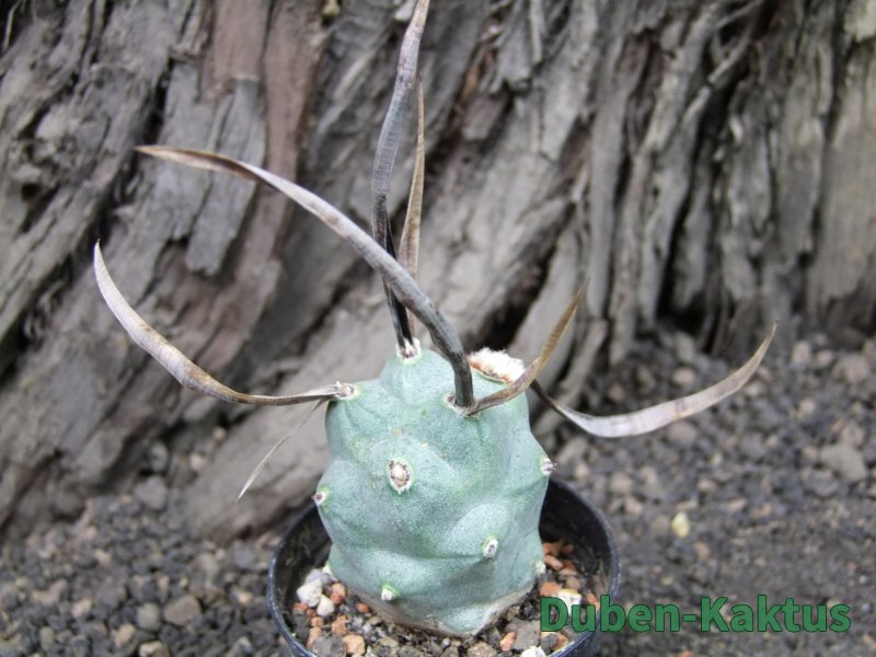 Jiná forma tradičního Tephrocactus articulatus papyracanthus. Tato vytváří větší placky a mladé černé trny, které jsou časem šedivé.
