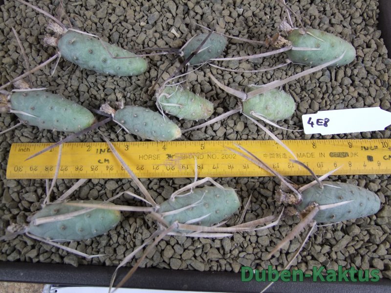 Jiná forma tradičního Tephrocactus articulatus papyracanthus. Tato vytváří větší placky a černé ostny.