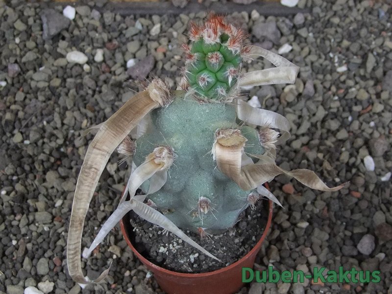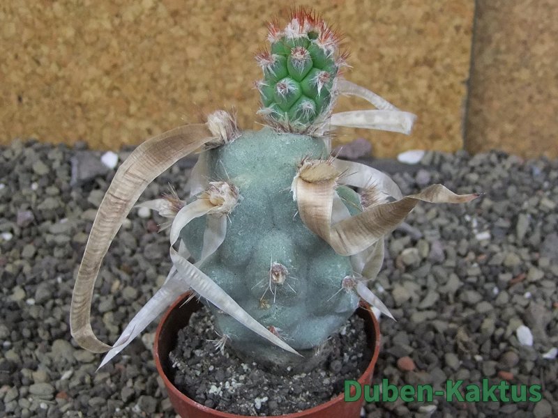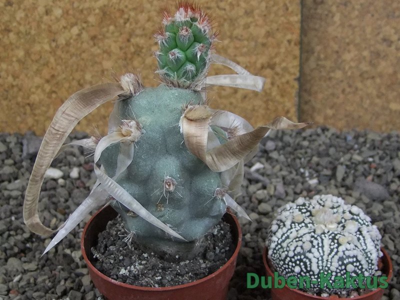 Jiná forma tradičního Tephrocactus articulatus papyracanthus. Tato vytváří velké placky a kroucené trny. Zřejmě naleziště Tanti, ztráta jmenovky. Na posledních fotografiích je porovnání s kaktusem v květináči 5,5 cm.