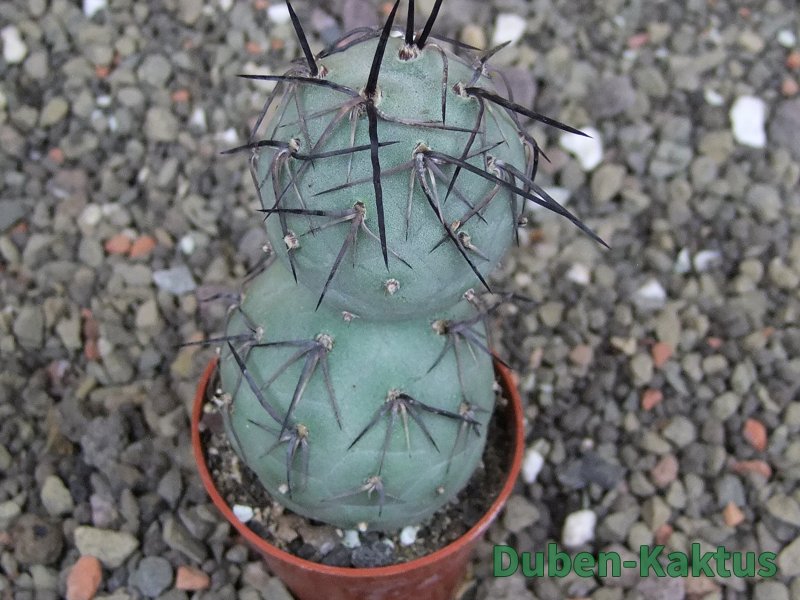 Tephrocactus geometricus se v Evropě množí většinou z odnoží. V pěstírně kaktusů Duben Kaktus množíme geometricusy přibližně ze sta klonů, v každé sadě odnoží se snažíme aby byly alespoń čtyři klony. Semen není mnoho, klíčí poměrně dobře, je však obtížné dopěstovat kaktusy - Tephrocactusy do stáří + - tři měsíce. Pokud stačí pletiva vyzrát, rostou již bez problémů.