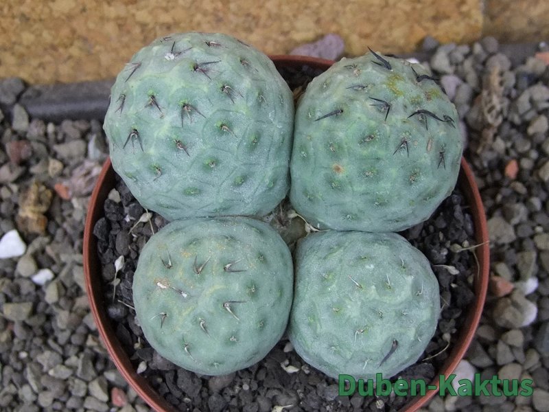 Tephrocactus geometricus se v Evropě množí většinou z odnoží. V pěstírně kaktusů Duben Kaktus množíme geometricusy přibližně ze sta klonů, v každé sadě odnoží se snažíme aby byly alespoń čtyři klony. Semen není mnoho, klíčí poměrně dobře, je však obtížné dopěstovat kaktusy - Tephrocactusy do stáří + - tři měsíce. Pokud stačí pletiva vyzrát, rostou již bez problémů.