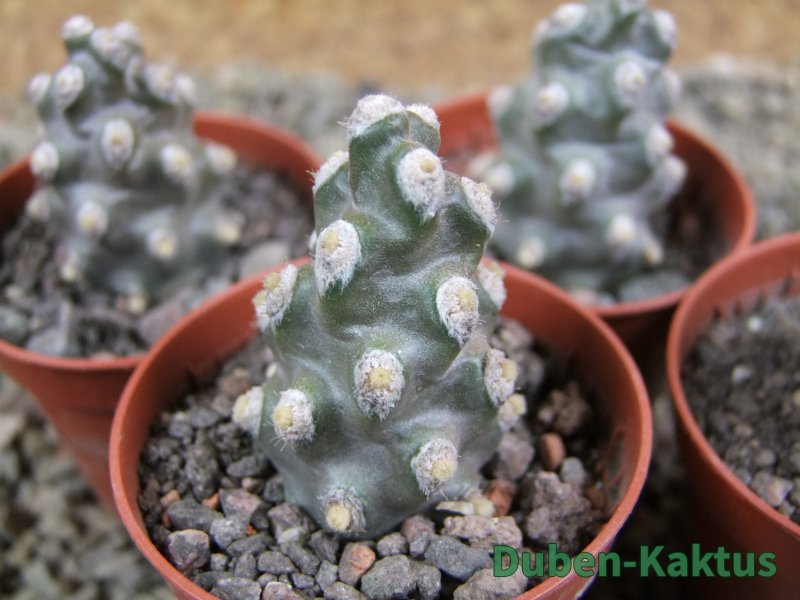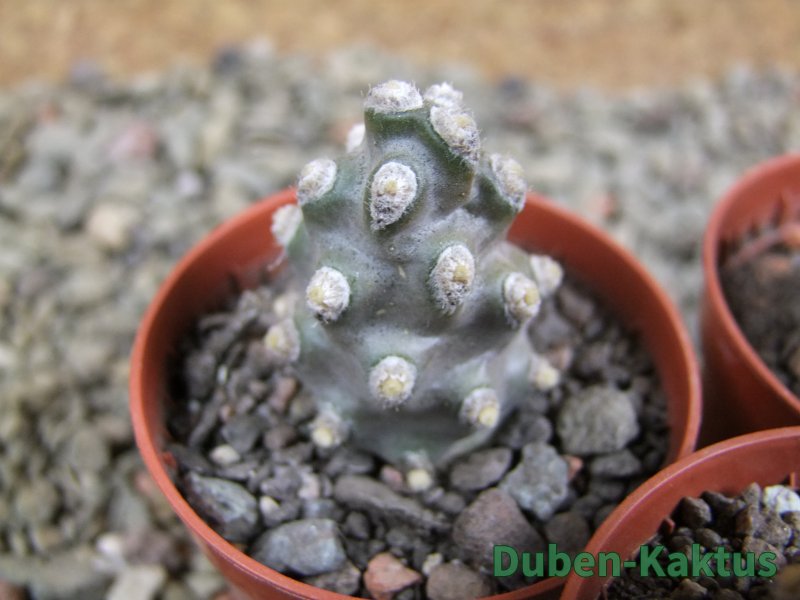 Naše vzrůstnější forma Tephrocactus molinensis. V dospělosti tvoří přízemní trsy, do 15 cm.